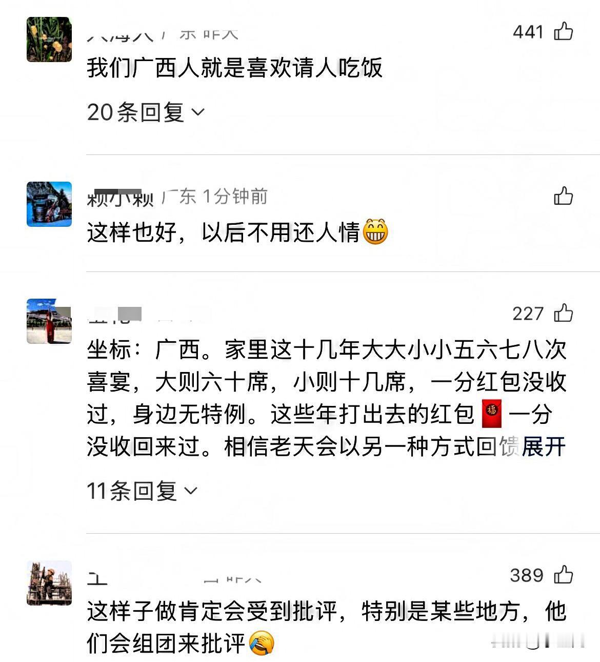太厉害了!广西这对新人办婚礼,门口直接写明“不收礼金”。不少人看完第一反应是点赞,说“这才是真喜事”。也有人说:不收礼金不现实。可现实是很多人早就不想随了,只是没人先开这个口。 我个人支持婚礼不收礼金。一场婚礼,本来是两个人的喜事,却慢慢变成了算账现场,你随了多少?我以后怎么还?还得不能少,还得跟着涨。久而久之,祝福变成负担,吃席变成压力。 广西这对新人明确说不收礼金,在我看来,是一种很清醒的选择。他们不是不懂人情,而是不想让亲朋好友,为一顿饭掏空钱包。 不收礼金,至少把婚礼从经济交换,拉回到情感见证。不给别人强加负担的婚礼, 我愿意真心祝福。 习俗不是不能改,只是需要有人,先迈出这一步。大家支持这种做法吗?