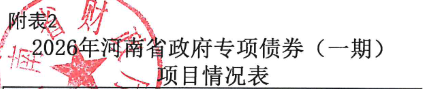 2026年河南省政府专项债券(一期),(详见附表2)。