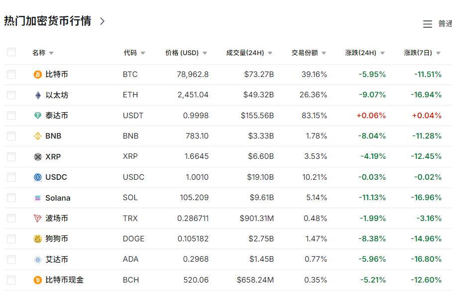 又一种资产,崩了!加密货币 比特币 以比特币为代表的加密货币,崩盘了。 从1月31日晚上开始,加密货币市场凄风苦雨。比特币一度下探到7.56万美元附近,目前报价在7.89万美元左右,单日跌幅约6%,过去7天累计跌幅11.5%。 如果从去年10月6日的历史最高点——126199.63 美元 / 枚计算,至今已经跌了37.5%。 这期间,黄金、白银分别上涨了23%和71%。虽然黄金、白银刚刚经历了一场大跌,但依然有丰厚的涨幅。 相比之下,比特币堪称是过去4月最惨的资产之一。 其他加密货币也大同小异。其中以太坊单日跌了9%,过去一周跌了近17%,具体可以看本文的配图。 去年比特币大涨的时候,很多人看到了100万美元。为什么4个月下来,不仅没有涨,反而惨跌了接近四成? 这就不得不提,太子集团12.7万枚比特币被冻结事件。 太子集团总部位于柬埔寨金边,老板陈志是福建人,一度拥有柬埔寨国籍。太子集团涉嫌电信欺诈、洗钱等,其犯罪所得资金曾通过美国金融系统流转,这给美国介入提供了理由。 陈志的 12.7 万枚比特币主要存于25 个非托管钱包,美国官方通过“类黑客”的手段控制了这些钱包,冻结了这些比特币。 这让市场意识到,非托管钱包并不是“绝对安全”,加密货币也同样可能被劫持,被政府穿透式监管、控制。 这件事在2025年10月14日披露,距离比特币10月6日创历史高位只有8天时间。此后,比特币就一路下跌,拖累了几乎所有的加密货币。 随后,我们看到了黄金、白银的加速上涨。 在避险资产上,加密货币和贵金属存在竞争关系。我之前多次在文章里讲过,如果没有比特币等加密货币,以美元的印钞速度,黄金早就应该上1万美元/盎司了。 过去这些年,比特币等遏制了黄金、白银价格上涨。去年四季度后,这种局面出现了改观,一些从加密货币流出的热钱,进入了贵金属领域,导致了贵金属的飙升。 加密货币的新一轮下跌,也跟美联储新主席的提名有关,其逻辑跟贵金属新一轮下跌类似。 此前大家交易“特朗普跟美联储的冲突”,现在冲突快结束了,所以该出货了。 贵金属和加密货币都有大量杠杆资金,一旦撤离就会踩踏。 这个周末,商业航天领域也有大消息:马斯克旗下的太空探索技术公司(SpaceX)申请发射100万颗卫星,以建立一个环绕地球的轨道数据中心网络。 这一卫星系统旨在适应AI、机器学习和边缘计算带来的爆发式数据增长,将提供大规模AI推理和数据中心应用所需的计算能力,为全球数十亿用户提供服务。