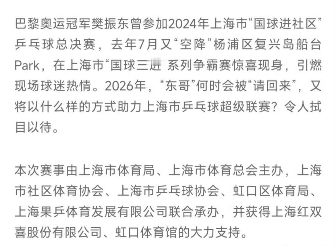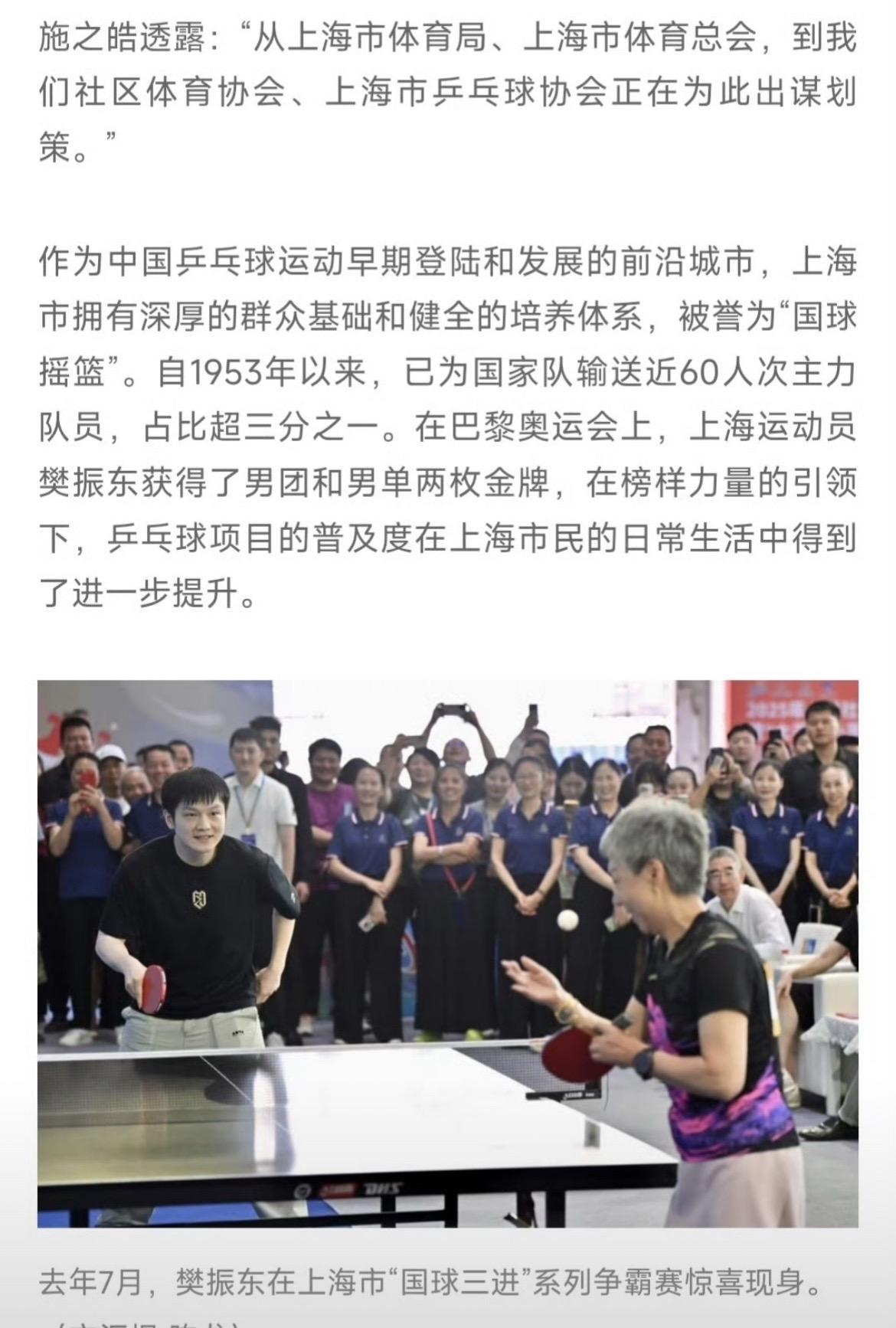 要把樊振东请回来,上海“国球进社区”系列争霸赛将要升级了!