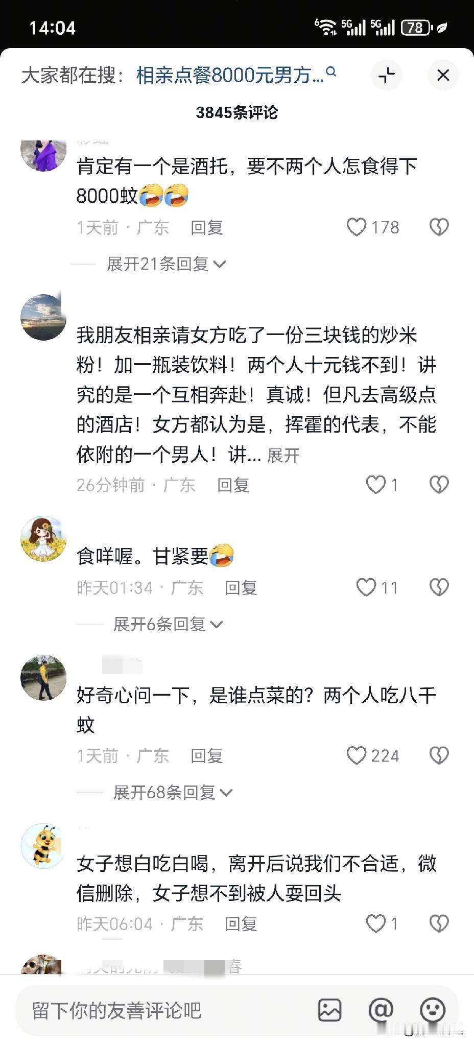 这种情况是诈骗吗? 一男子和女子经介绍相亲,俩人初次见面相约就餐,结果竟然消费8000块。 到了结账的时候,男子借口去卫生间,然后玩起了消失,最后女子只得自掏腰包。 不知道这顿餐是谁点的,如果是男子点的,然后吃完脚底抹油开溜,这可能是属于诈骗,需要负法律责任的。 如果是女子点的,感觉那男的开溜,也情有可原。第一次见面,上来库库的一顿点,净点好的,吃顿饭花八千块,那不是给男子当冤大头吗[捂脸]。 不过话说回来,遇到这样的事情,开溜也不是正解,可以商量,可以平摊,或者支付自己认可的那一部分。直接开溜,怕是要承担法律责任。