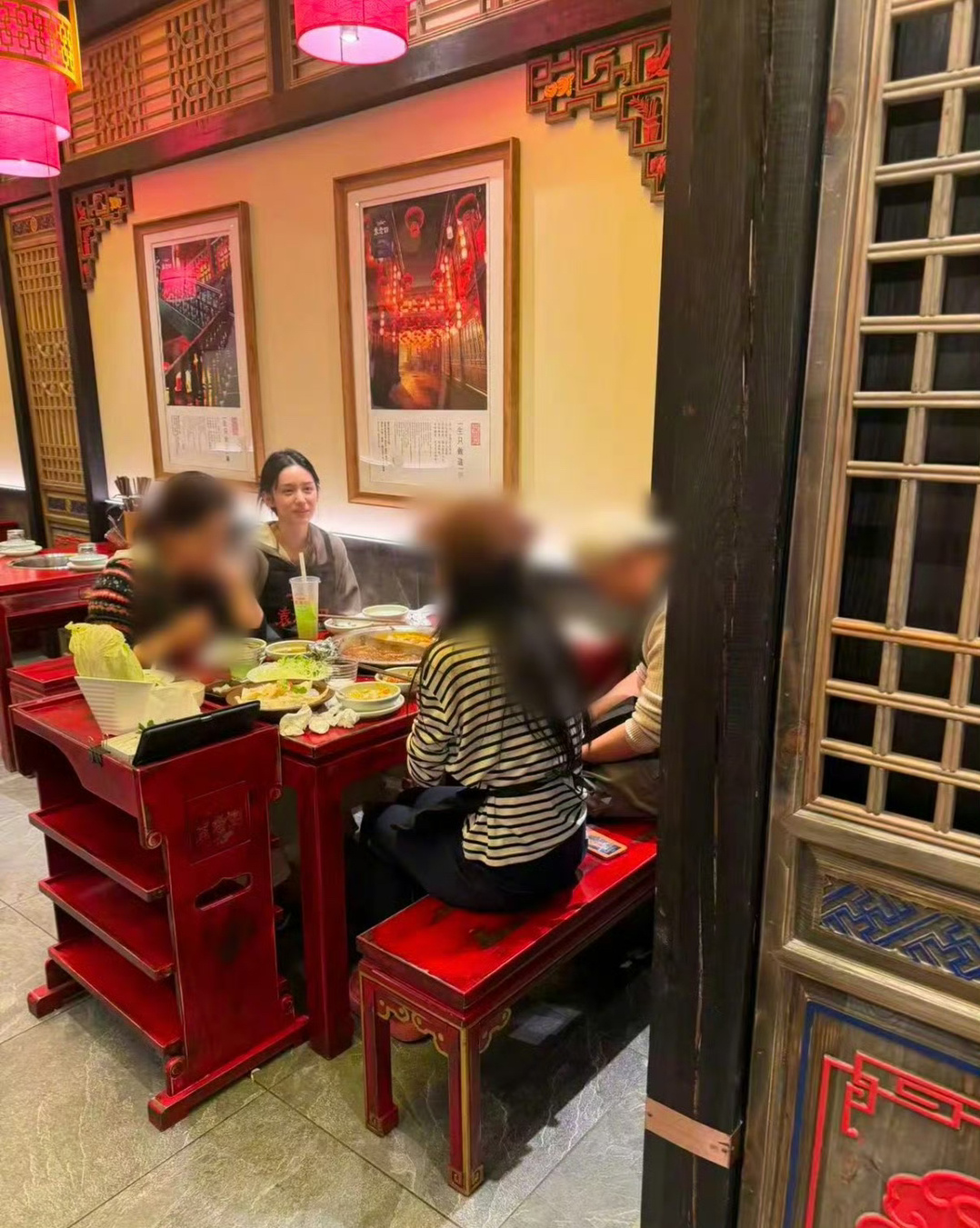 网友在塞尔维亚偶遇周也一家吃火锅,素颜也子也好漂亮~