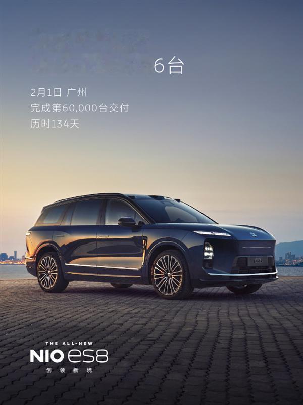 值得注意的是,蔚来全新ES8也在广州完成第6万台新车交付,历时134天。