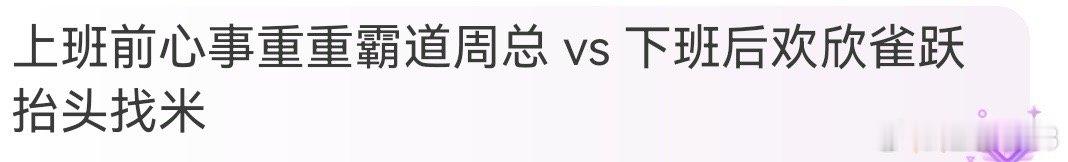 周深下班使人年轻 周深这波状态对比,妥妥的“打工人真实写照”。上班时全力以赴,是职业素养;下班后欢天喜地,是人之常情。看他下班后瞬间年轻好几岁的样子,忍不住感慨:果然,没有什么比下班更能让人焕发青春了!深深,保持这个状态!