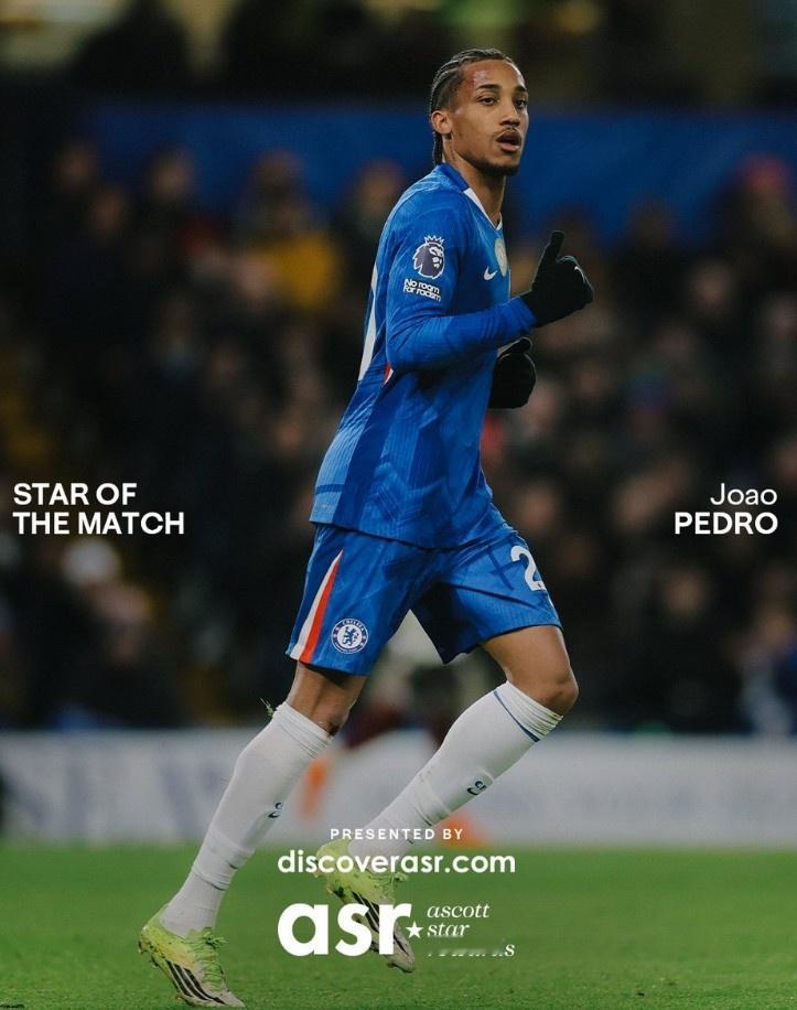本场比赛若昂·佩德罗替补登场贡献1球1助攻,帮助球队完成大逆转,他也当选切尔西官方评选出的本场队内最佳球员。