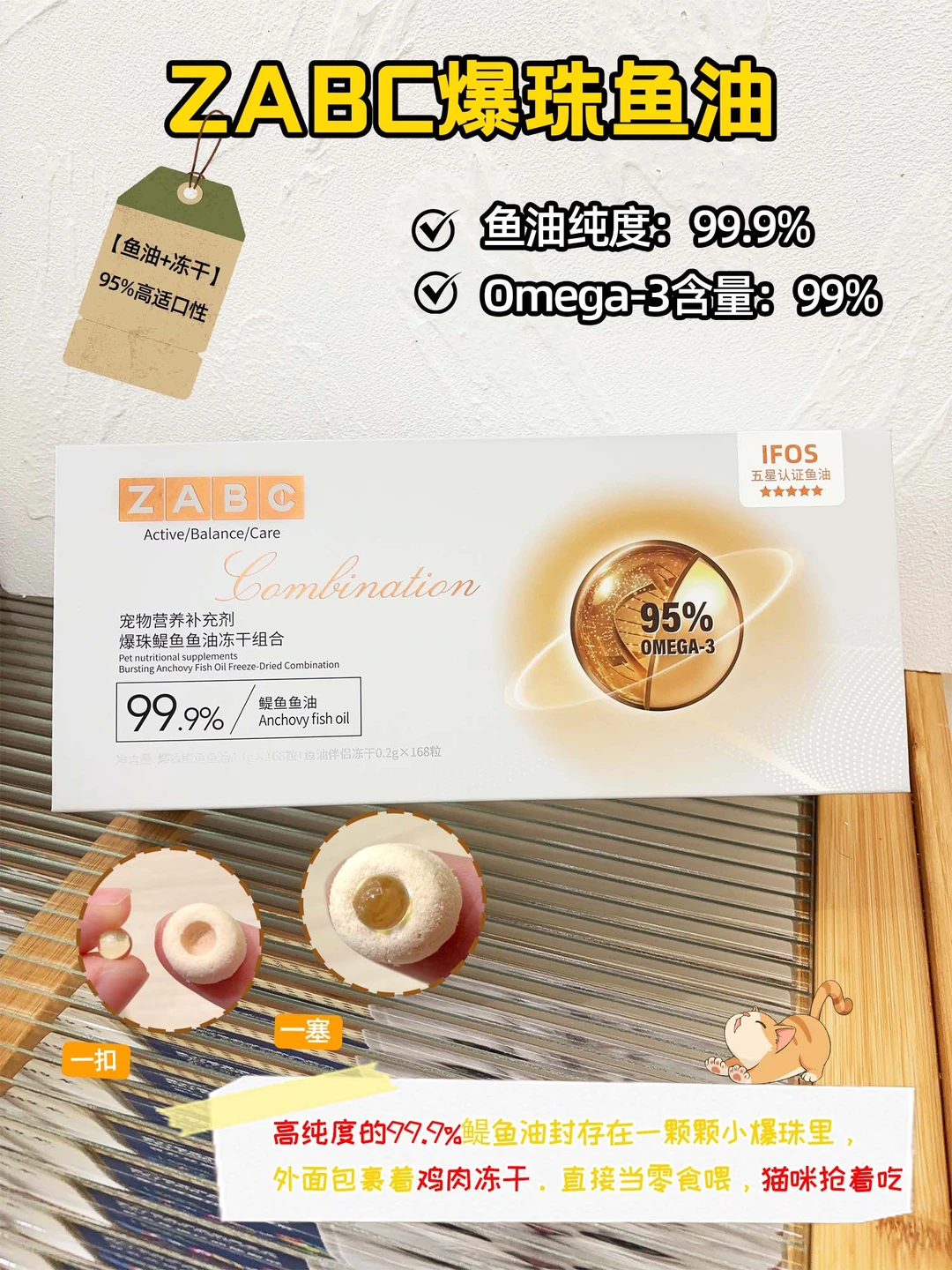 对抗掉毛Omega-3是根本。ZABC爆通过“爆珠+冻干”让喂食这件事变得无比轻松。