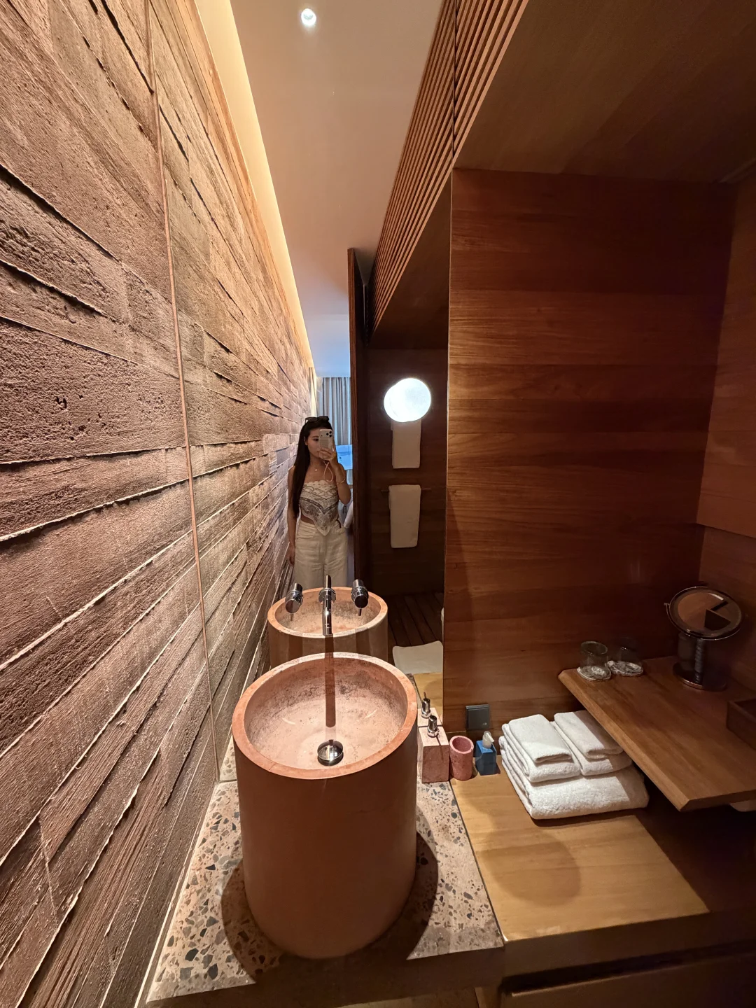 3、这个是基础房型 房间内部其实挺有设计感的 也挺新的 缺点就是太小太挤 卫生间和洗浴间隔的太近 做不到干湿分离 房间吹风机风力挺大的 就是很重 吹头发像举了一块砖头似的 不需要转换插头 可直接充电 但是充电的地方在床头背后 短数据线的人就不能边充电边玩手机了