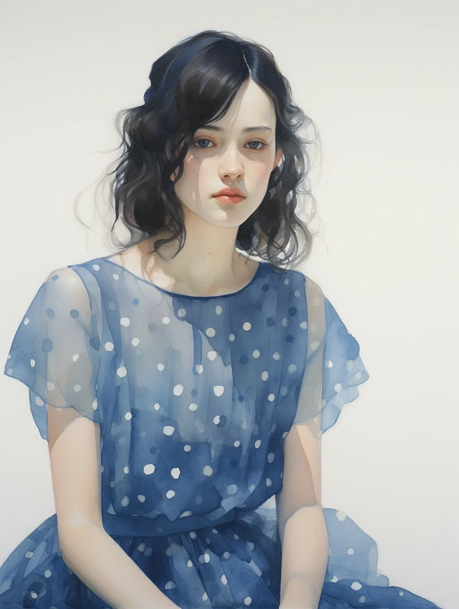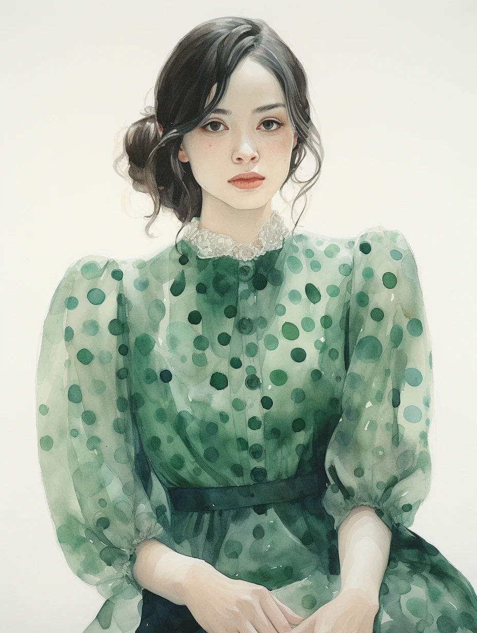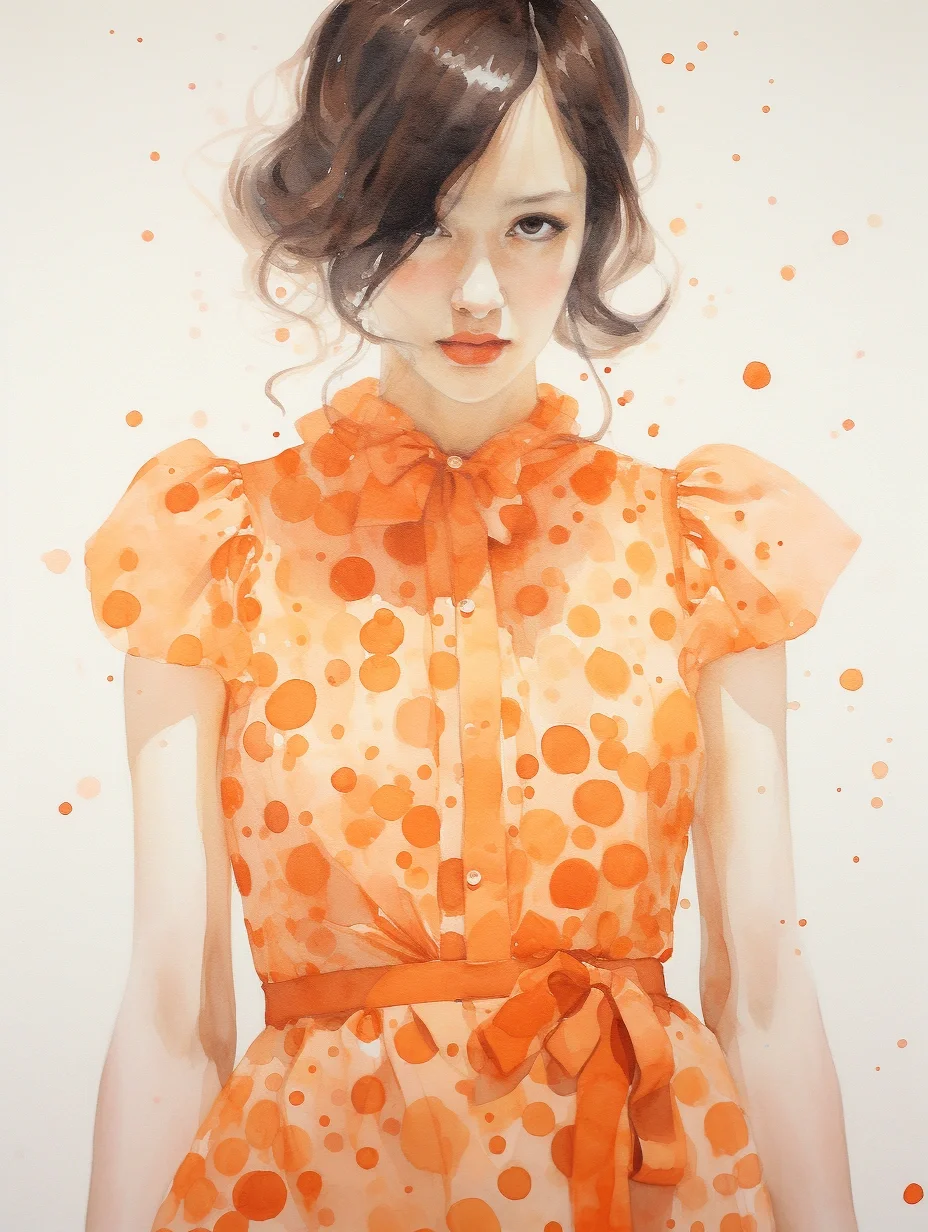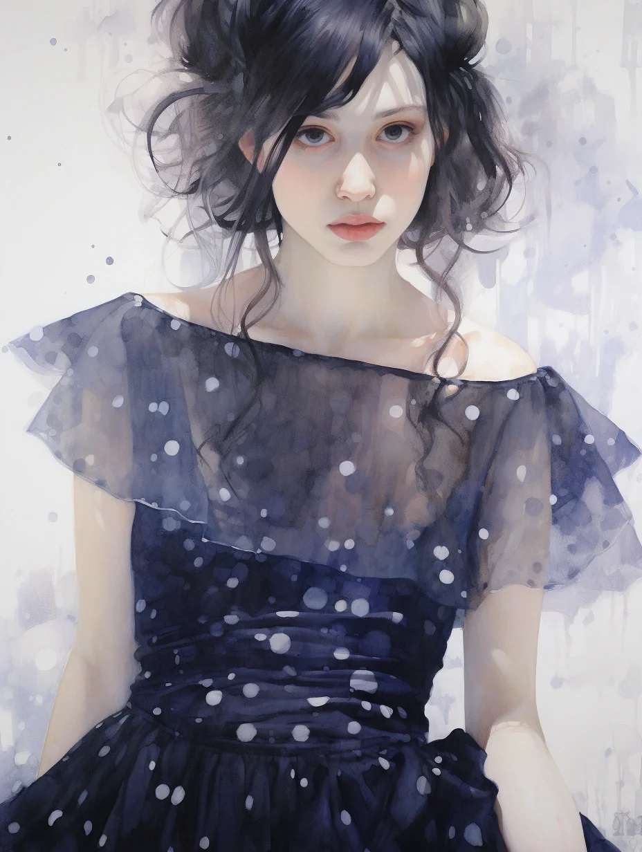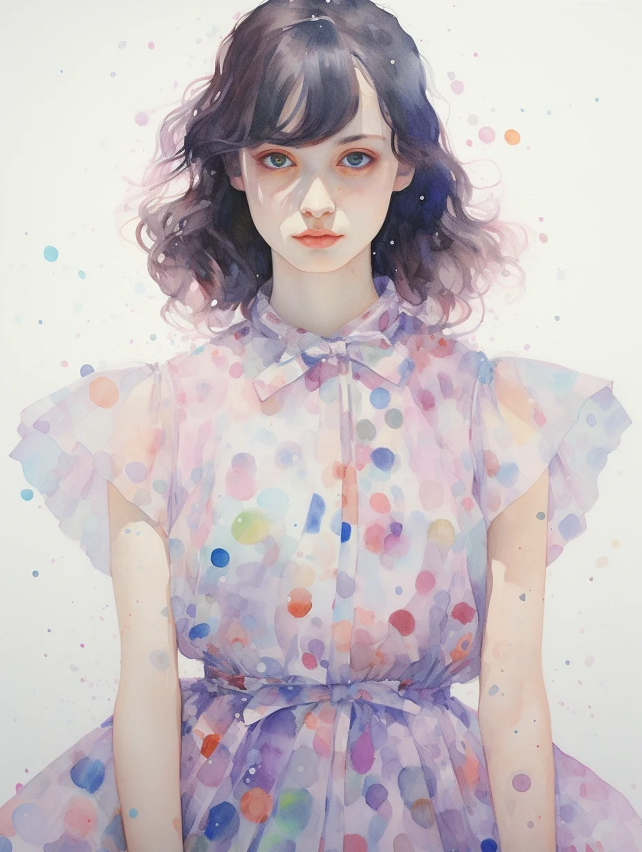 AI水彩:穿波点薄沙裙的女孩