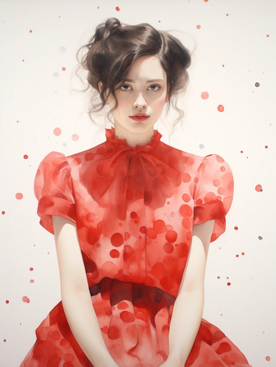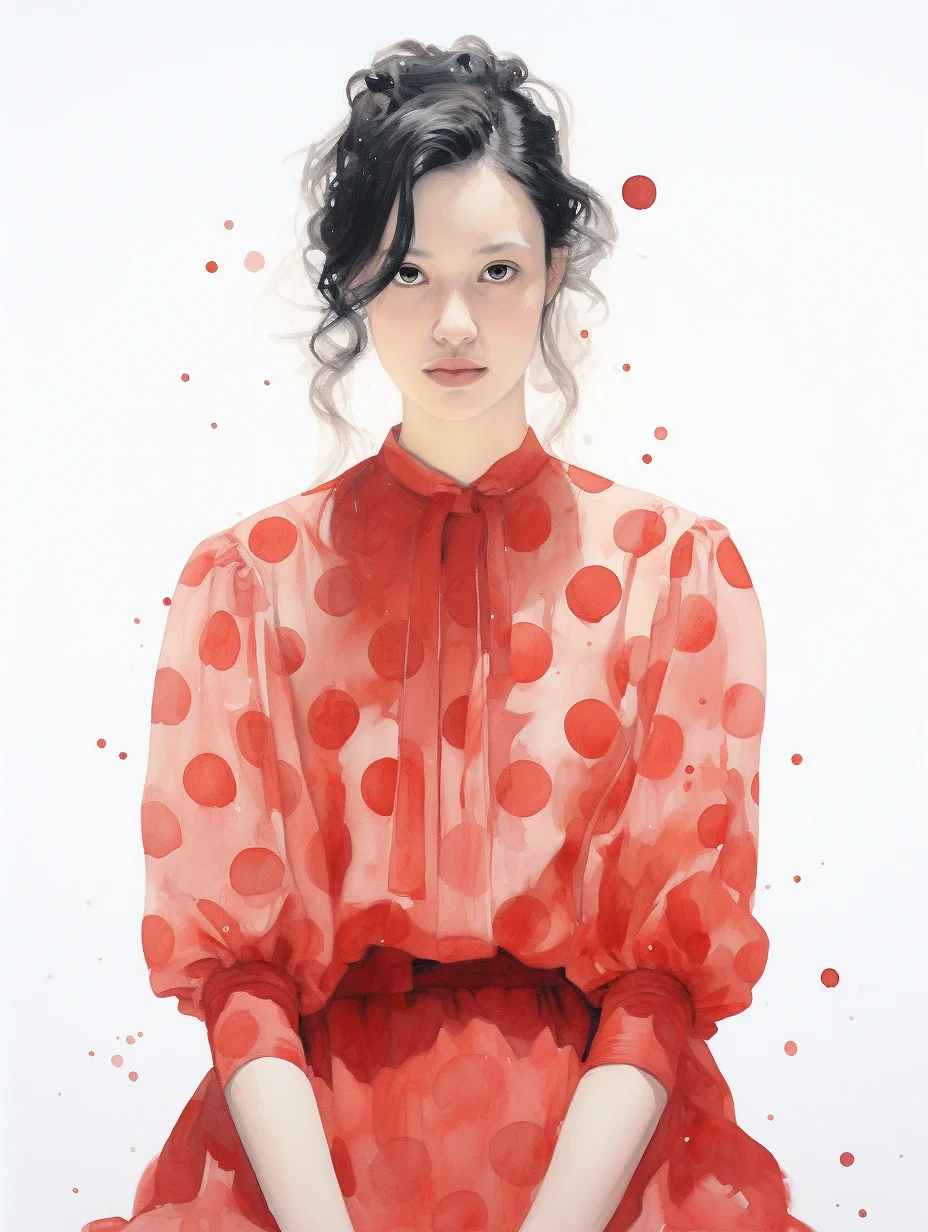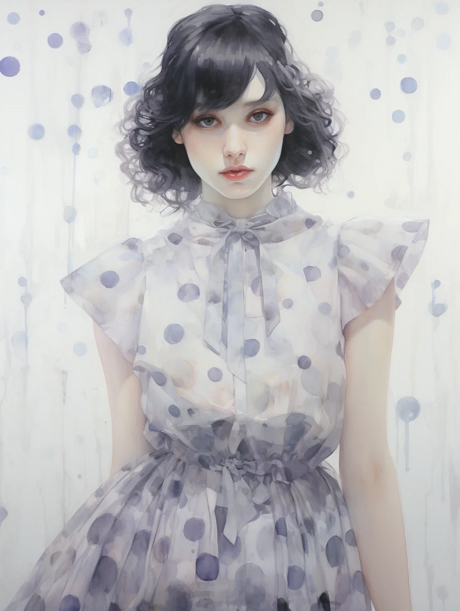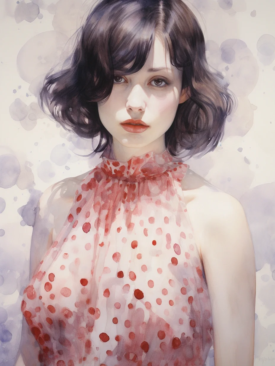 AI水彩:穿波点薄沙裙的女孩