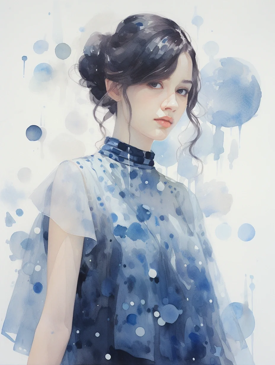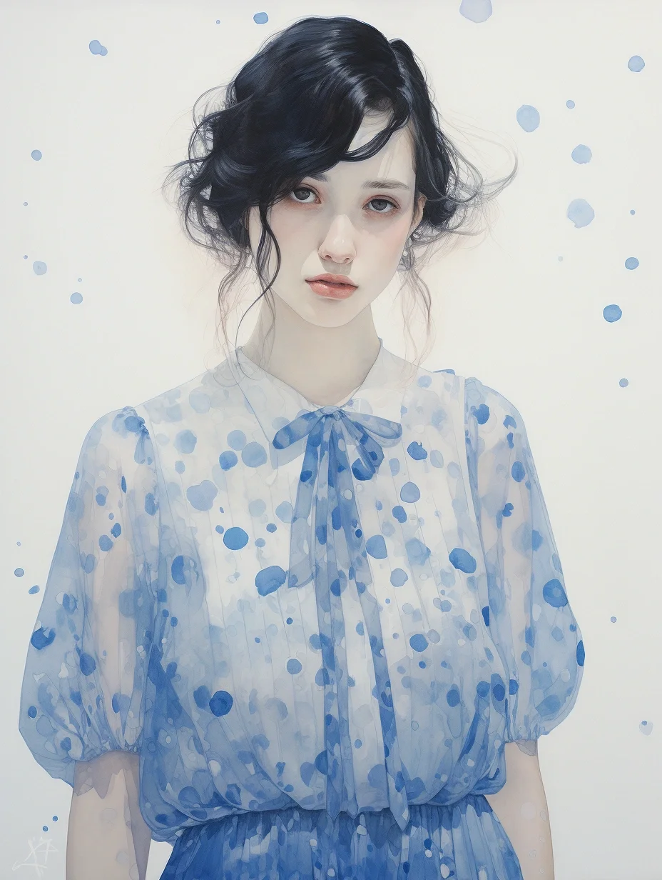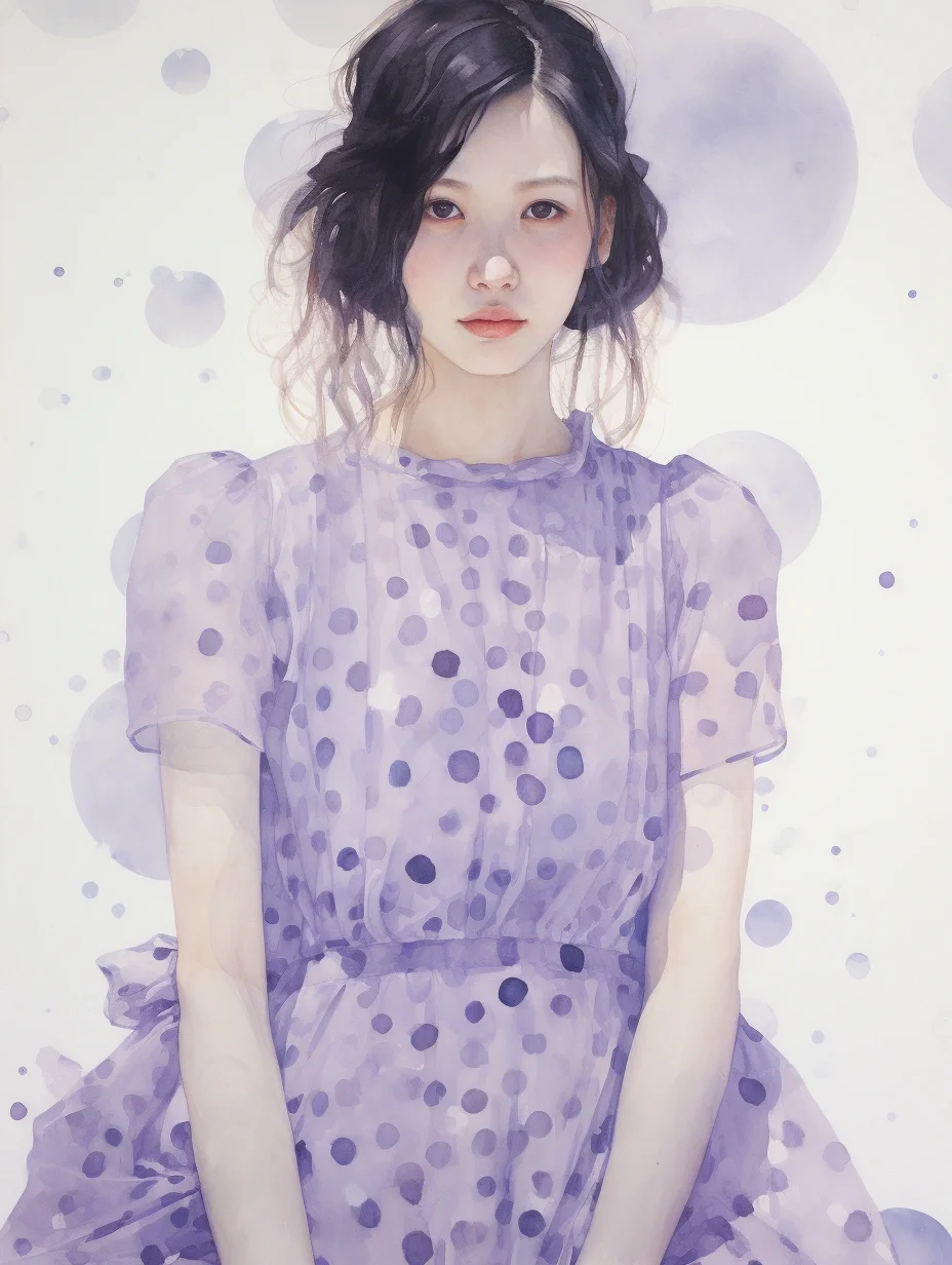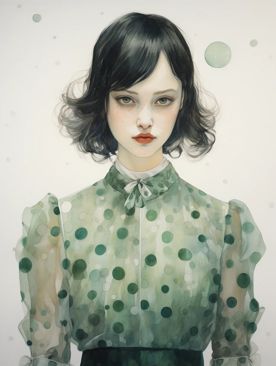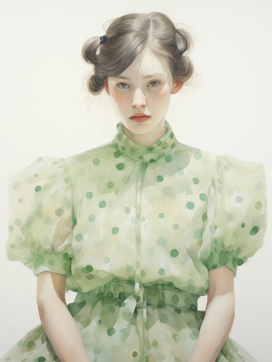 AI水彩:穿波点薄沙裙的女孩