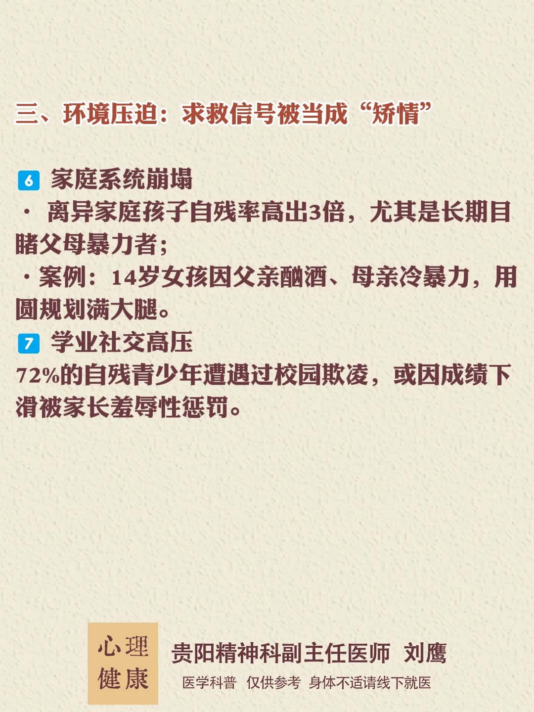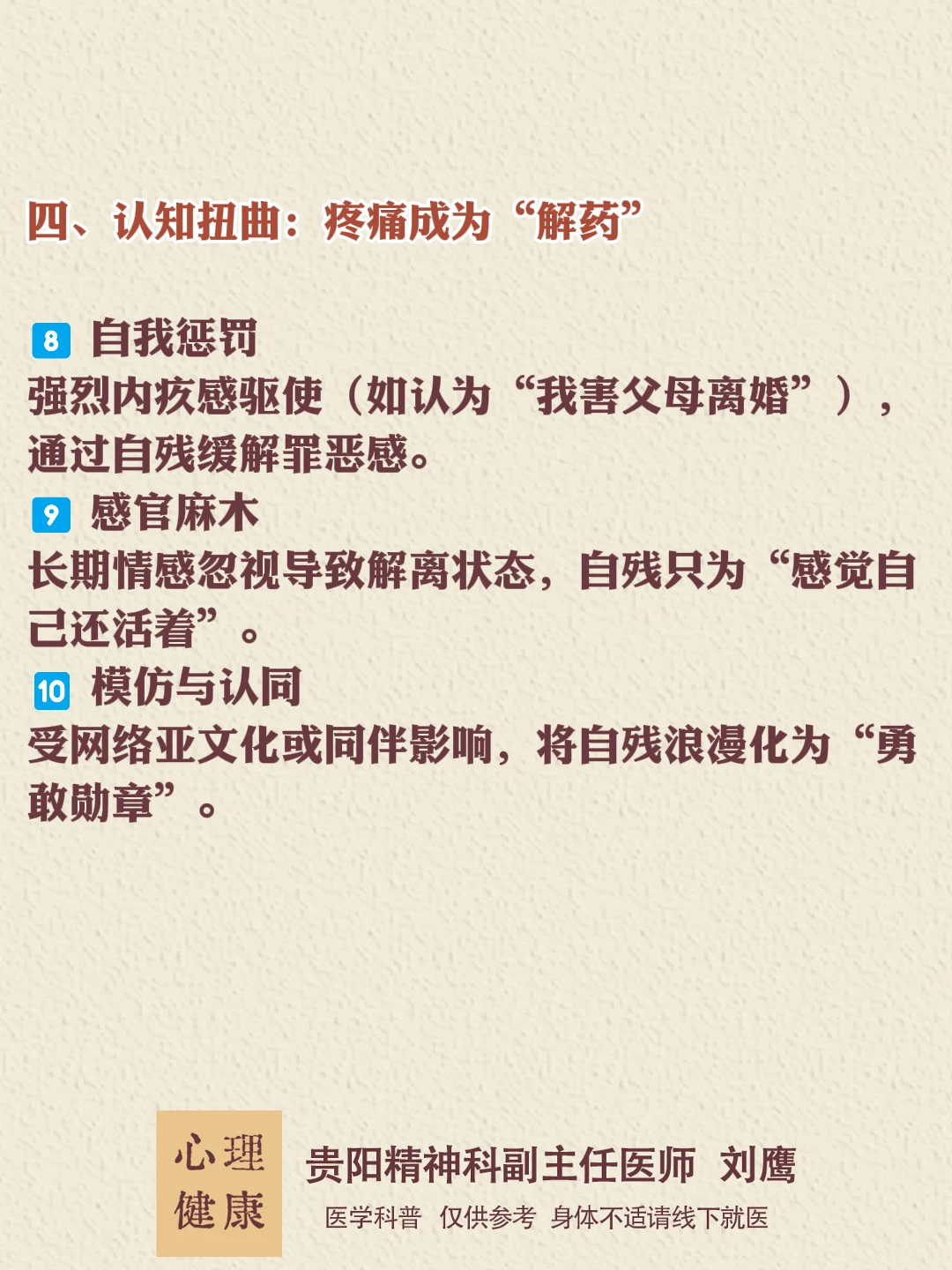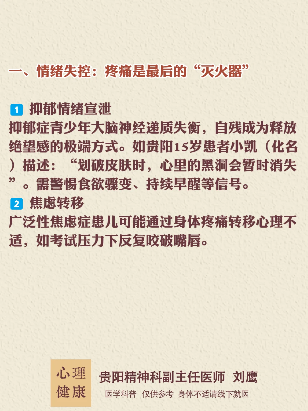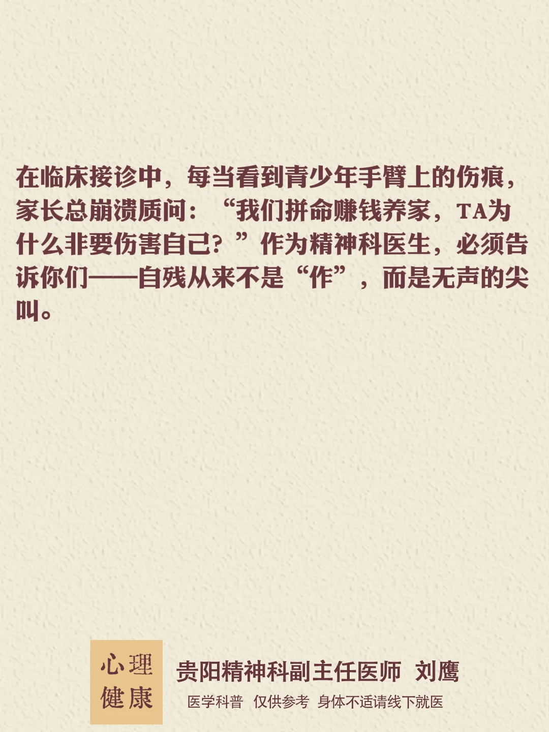贵阳精神科刘鹰:青少年自伤自残的四大原因