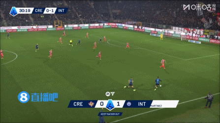 上半场伤停补时1分钟,半场战罢,国米暂2-0克雷莫内塞。