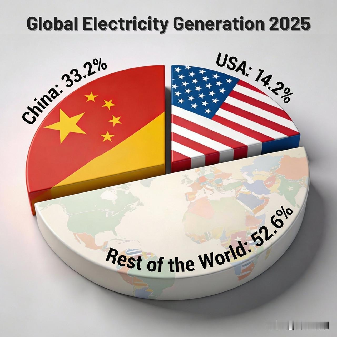我国在全球发电领域已是绝对主导力量 刚刚过去的2025年,我国电力领域又创下了一个全球“首次”:全社会用电量历史性突破10万亿千瓦时(约10.4万亿kWh),同比增长5%!这相当于美国全年用电量的两倍多,也超过欧盟+俄罗斯+印度+日本四个经济体用电量的总和。我国电力规模稳居世界第一,而且增速远超多数发达国家。 更震撼的是,能源局最新数据(1月28日发布):截至2025年底,全国累计发电装机容量达到38.9亿千瓦(3.89 TW),同比增长16.1%。其中,2025年一年新增装机5.43亿千瓦,这个增量就比印度全国累计装机还多,远超德国、日本等国的总和。过去4年(2022-2025),我国累计新增装机高达15.15亿千瓦,相当于“增出了一个美国”! 而在这场电力“狂飙”中,太阳能发电无疑是最大新增贡献者: • 太阳能装机容量达12.0亿千瓦,同比增长35.4%(新增约3.15亿千瓦); • 风光合计新增超4.3亿千瓦,占新增装机的绝大部分; • 可再生能源发电装机占比超60%,风光发电量占比显著提升,每3度电就有1度多来自绿电; • 清洁能源已开始“挤压”火电空间,2025年煤电发电量微降或持平,新能源基本覆盖全部新增用电需求。 国际媒体和马斯克都坐不住了!埃隆·马斯克在近期博客和达沃斯论坛上多次点名:中国电力扩张速度惊人,到2026年或2027年,发电量可能达到美国的3倍!他直言,AI算力的尽头是电力,而中国凭借光伏、风电爆发式增长+特高压电网,已经为AI数据中心、电动车、智能制造筑牢能源底座。当前中国发电量已是美国的约2.4倍,装机容量接近3倍,新增增速是美国的7倍左右,这个差距还在快速拉大。 我国电网的规模极其庞大,而且还在快速增长。 到 2025 年,它们将占全球发电量的 33.2%,是美国的两倍多(~14.2 %),那相当于世界产能的三分之一,那么,世界其他地区加起来就占了52.6%。 全球发电领域的绝对主导力量 中国电力需求 中国用电 中国电力发展 用电量 各产业用电量 用电对比分析 中美电力对比