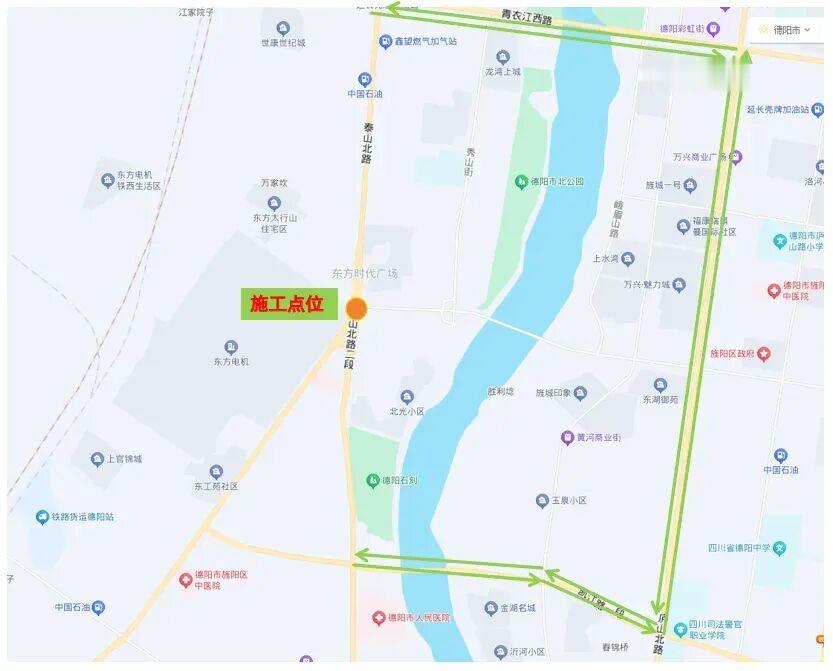 泰山路—黄河西路路口、泰山路—青衣江西路路口西侧主路占道施工温馨提示