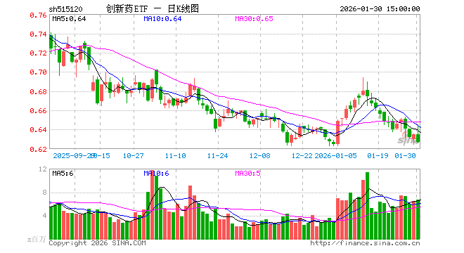 1月30日,创新药ETF(515120)跌1.26%,成交额4.22亿元。当日份额增加2.07亿份,最新份额为143.18亿份,近20个交易日份额增加28.45亿份。最新资产净值计算值为89.75亿元。