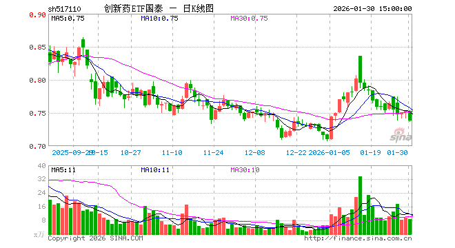 1月30日,创新药ETF国泰(517110)跌1.99%,成交额630.77万元。当日份额增加200.00万份,最新份额为6.61亿份,近20个交易日份额增加8800.00万份。最新资产净值计算值为4.87亿元。