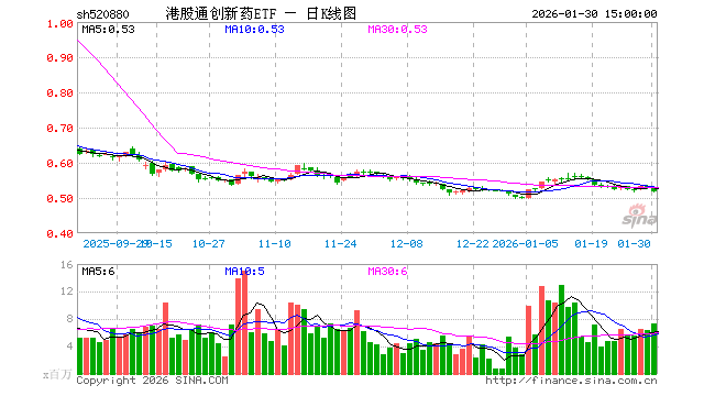 1月30日,港股通创新药ETF(520880)跌2.45%,成交额3.88亿元。当日份额增加1.20亿份,最新份额为47.28亿份,近20个交易日份额增加5.28亿份。最新资产净值计算值为24.57亿元。