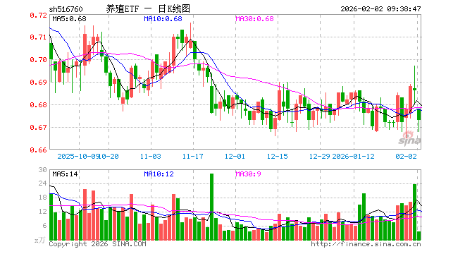 2月2日,养殖ETF(516760)开盘跌1.17%,报0.678元。养殖ETF(516760)重仓股方面,牧原股份开盘涨0.07%,海大集团涨0.08%,温氏股份跌0.45%,正邦科技跌3.03%,新希望跌3.54%,梅花生物跌0.54%,生物股份涨0.00%,大北农跌6.10%,圣农发展涨0.00%,立华股份跌1.64%。