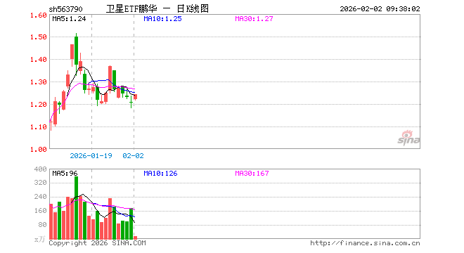 2月2日,卫星ETF鹏华(563790)开盘涨0.99%,报1.220元。卫星ETF鹏华(563790)重仓股方面,中国卫星开盘涨1.78%,航天电子涨1.01%,臻镭科技涨1.44%,中国卫通涨0.79%,中科星图涨1.99%,华测导航跌0.52%,北斗星通涨0.44%,北方导航跌0.36%,芯原股份跌3.16%,国博电子跌0.09%。