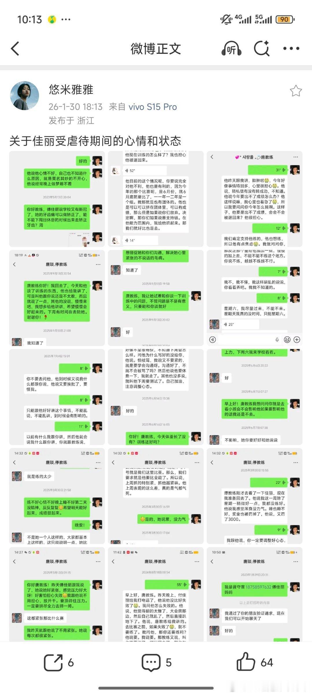 这个省队的小妹妹叫傅佳丽,才13岁。因为训练得了肺气肿,还有髋关节脱位,教练不给治,说是正常现象,pua家长和运动员本人继续加练,导致小姑娘在长期的身体疼痛和心理高压下跳楼了,还好人没出大事,目前还在住院。她母亲现在在微博维权,说教练还有变相索财的行为。👇