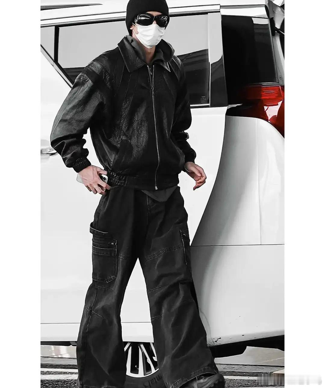 宋威龙机场穿搭,一身黑色穿搭潮到风湿,就连手都很有性张力!!!!