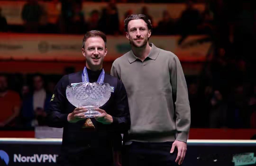 斯诺克德国大师赛决赛,世界排名第一的特鲁姆普打出一杆破百和六杆50+,以10-4击败老对手肖恩·墨菲,继2020年、2021年和2024年后,第四次捧起该项赛事冠军奖杯,也终于打破了长达14个月的冠军荒,这也是他的第31个排名赛冠军。颁奖典礼还出现了一个难得的画面,特鲁姆普的弟弟也出现在现场与哥哥合影留念,身高超过1米8的特鲁姆普站在弟弟身边竟然显得有点“小鸟依人”,因为弟弟的身高接近2米!