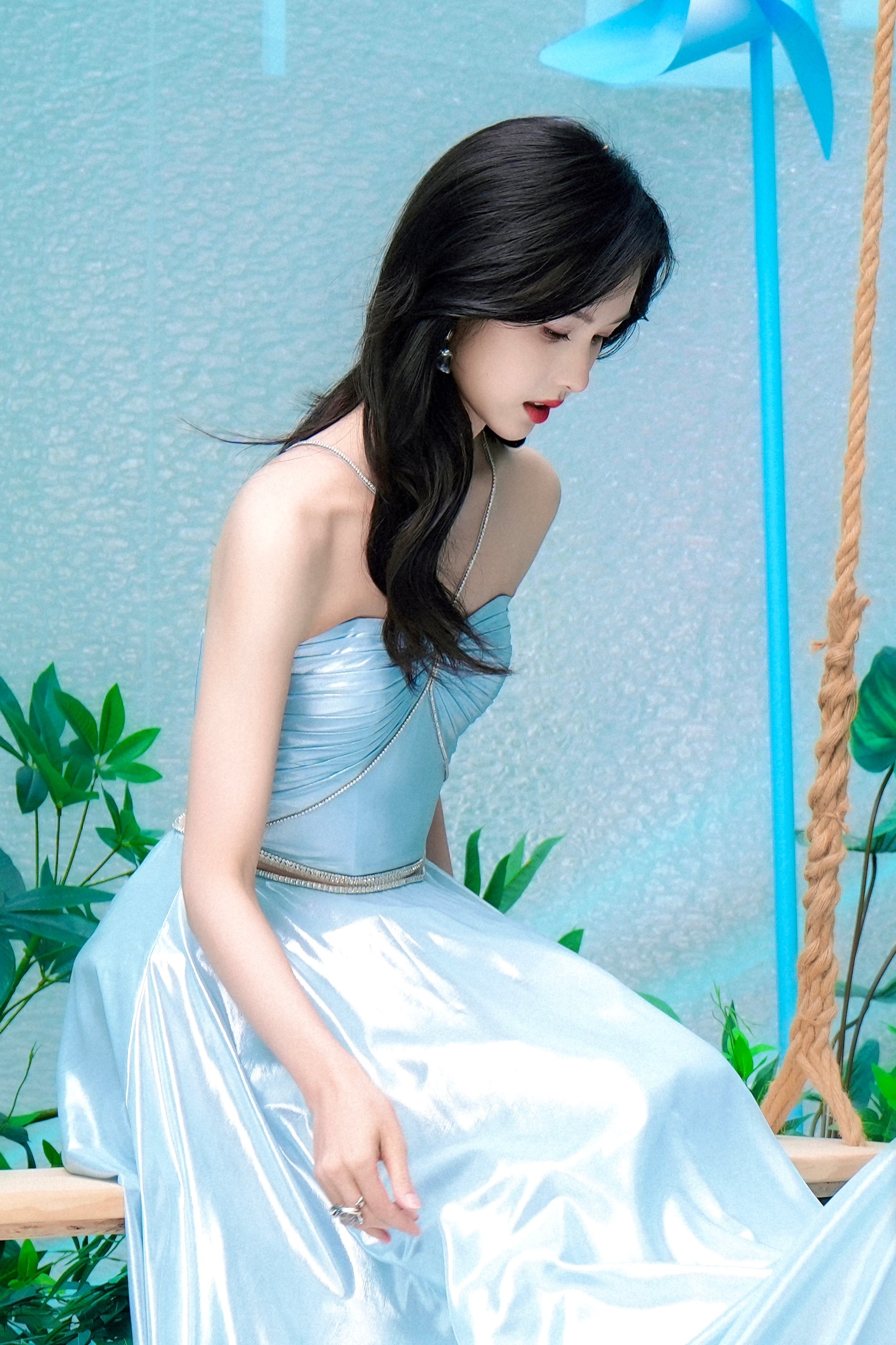 陈都灵 一袭冰蓝长裙自带清透光泽,像把夏日海风穿在了身上。陈都灵深海公主