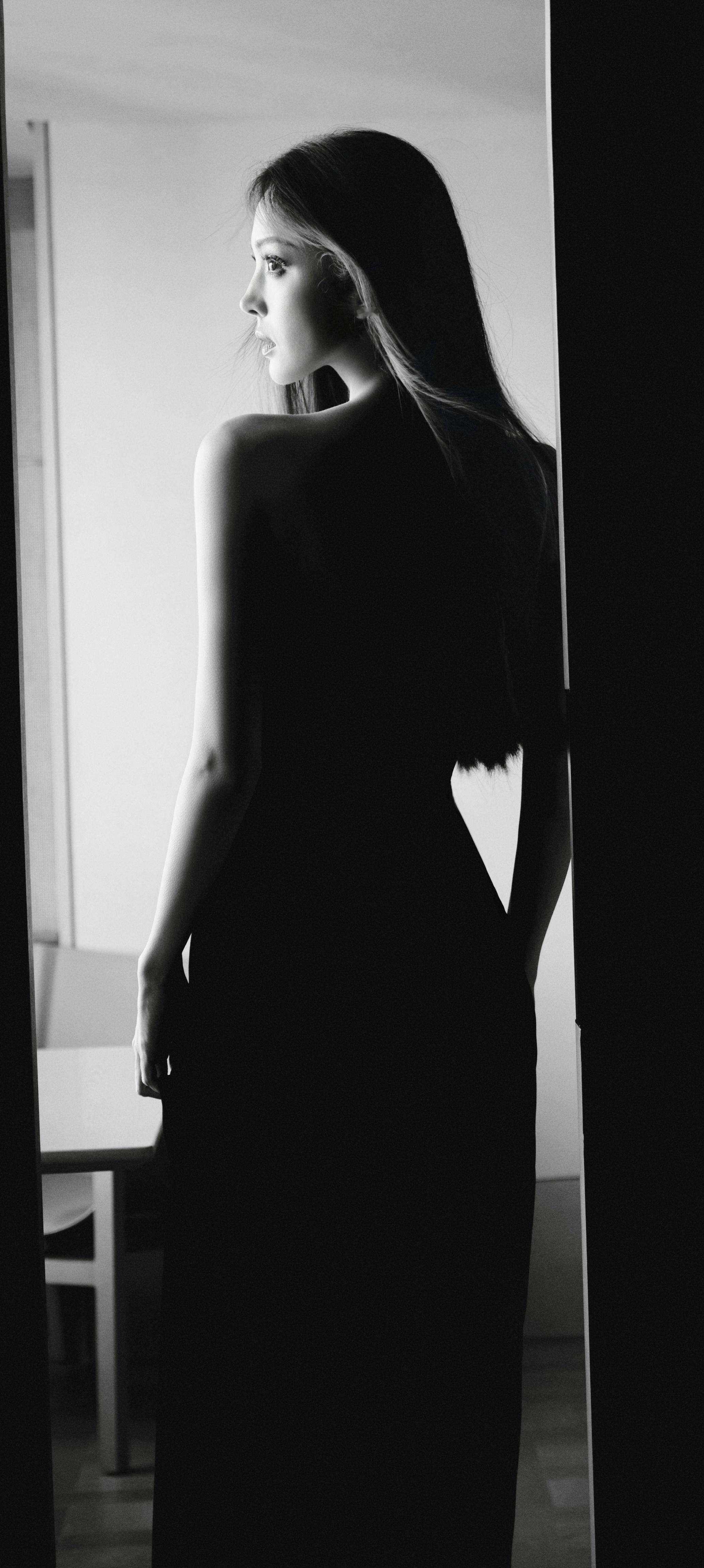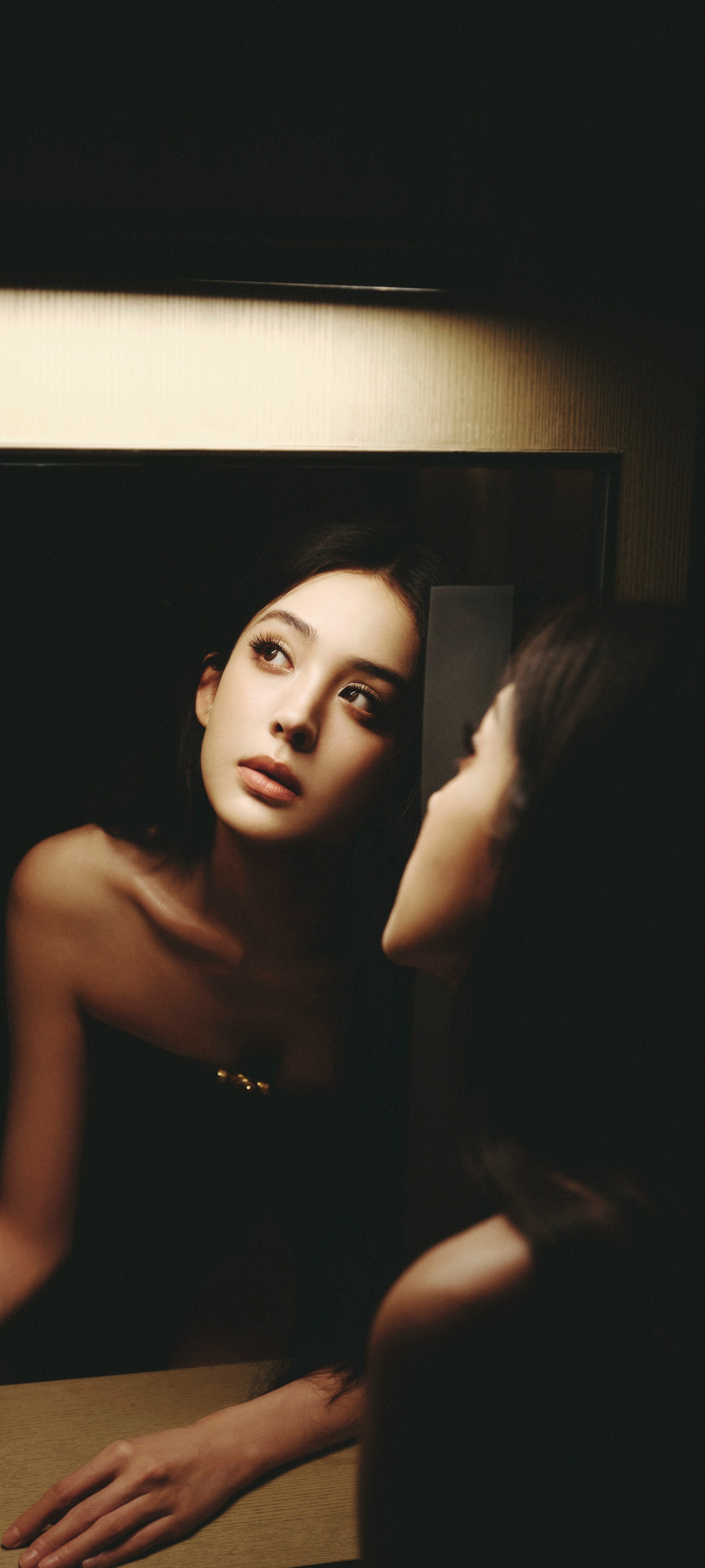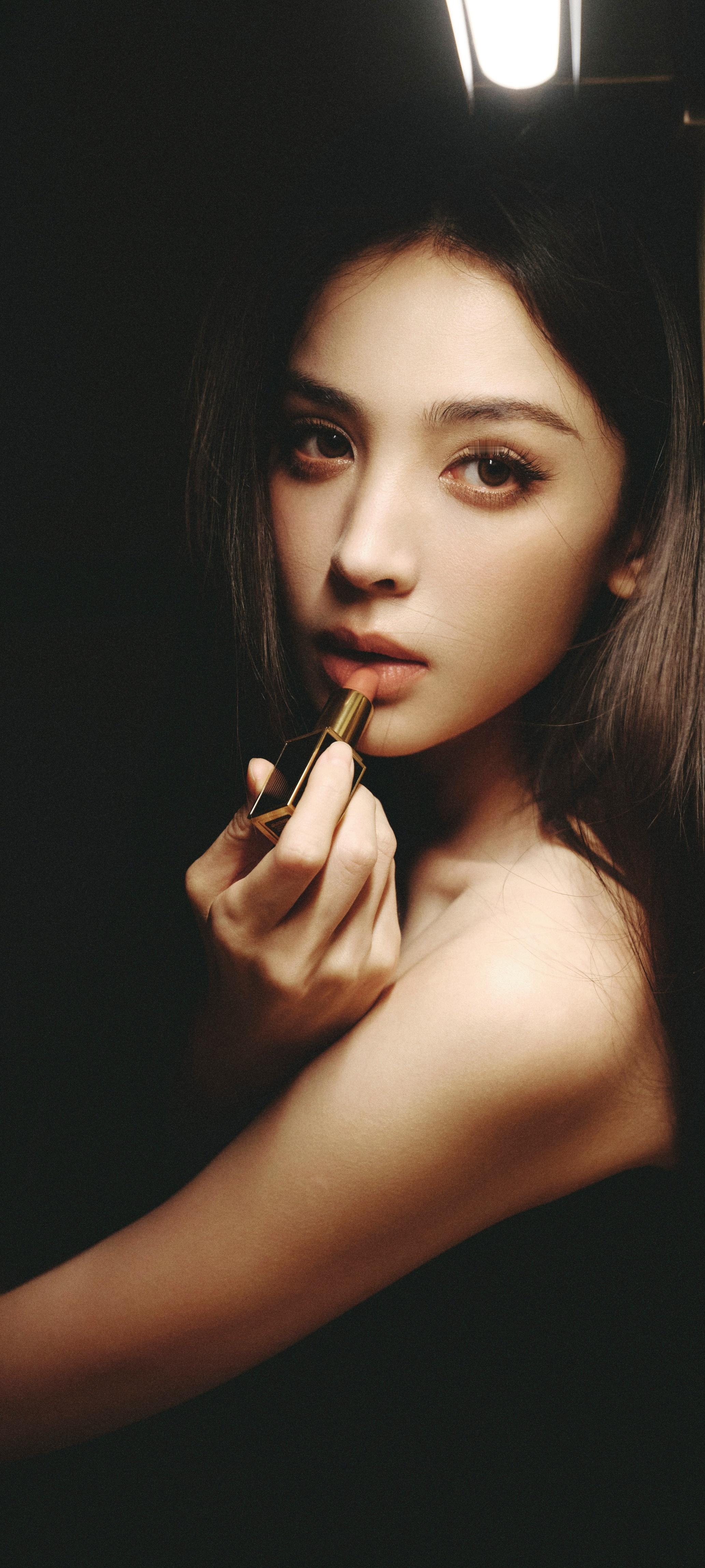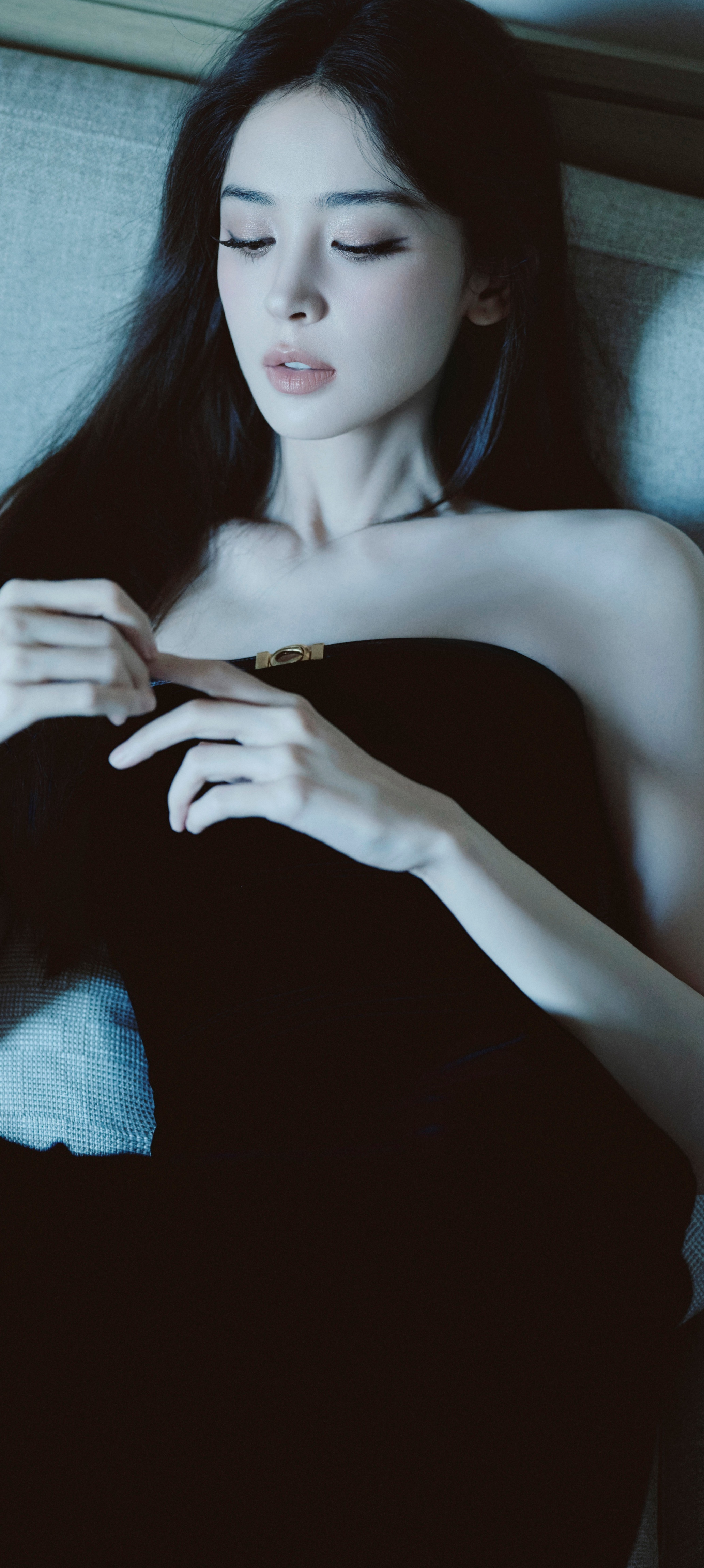 佟丽娅高清手机壁纸:黑色抹胸裙,高贵优雅。佟丽娅
