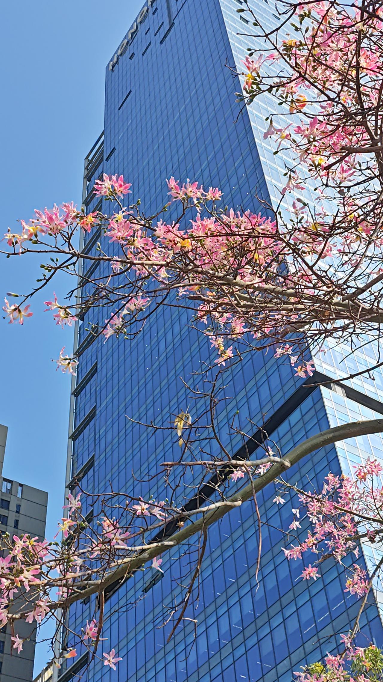 深圳2026年2月2日,香蜜湖红荔路,异木棉开了好长一段时间了,花期也太长了。[