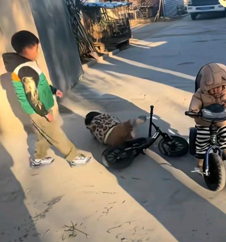 三岁孩子欺负一岁半弟弟,只见小孩不停的用自己的小车子去撞另一个小孩子的小车子, 八岁的哥哥在旁边一脚把他踢翻。 网友说,在绝对的实力面前,一切都是徒劳。 以大欺小谁不会啊, 现在老实了吧! 所以不能随便欺负小孩子!