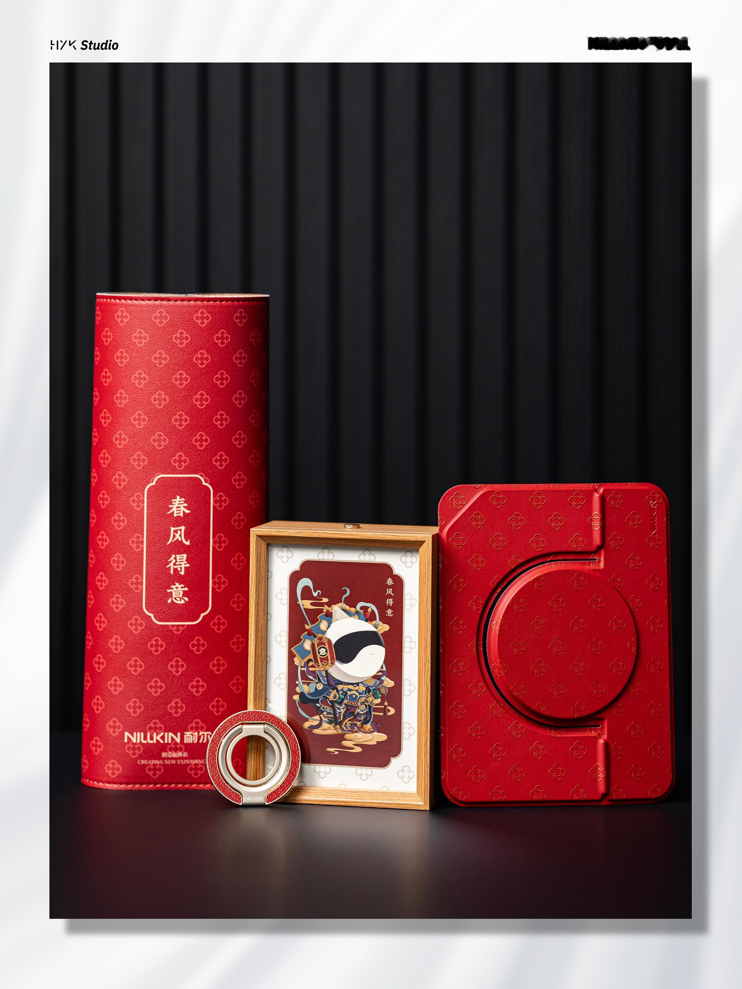 【转发+评论】这个套装给大伙抽了!整套设计以「马蹄纹」为核心,四个蹄印组合成四瓣花形,搭配喜庆的大红色调。套装里的随翼Pro平板支架,比上一代要薄,看起来会更加平整,而且它的背面还有磁吸,可以贴在冰箱这类物品上,使用场景比起普通的平板支架要广。里面还有磁吸指环、桌垫、相框,整套红红火火的,就非常喜庆!