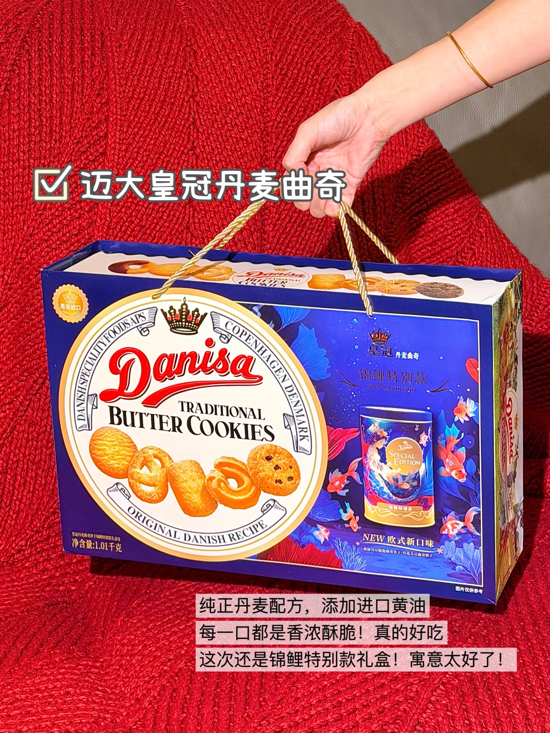 纯正丹麦配方,添加进口黄油,每一口都是香浓酥脆!这次还是锦鲤特别款礼盒,寓意太好了,过年送亲戚朋友很合适啊!