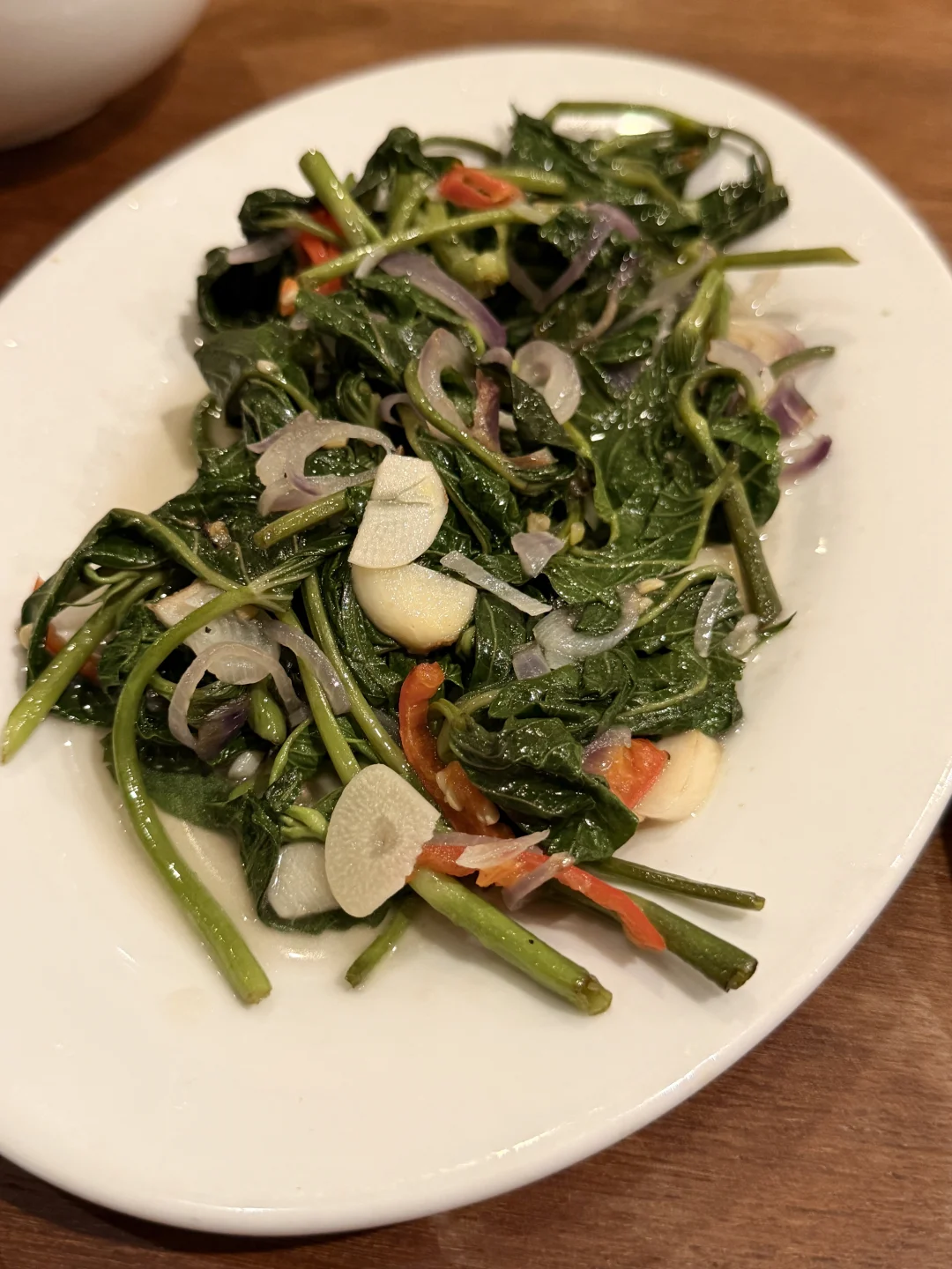 4、P4这个菜单上写的是空心菜 但是感觉像番薯叶 不过也满好吃的 跟我们四川的家庭炒蔬菜感觉一个味