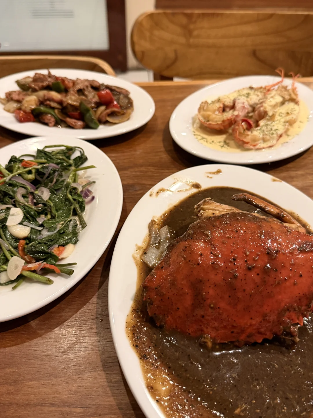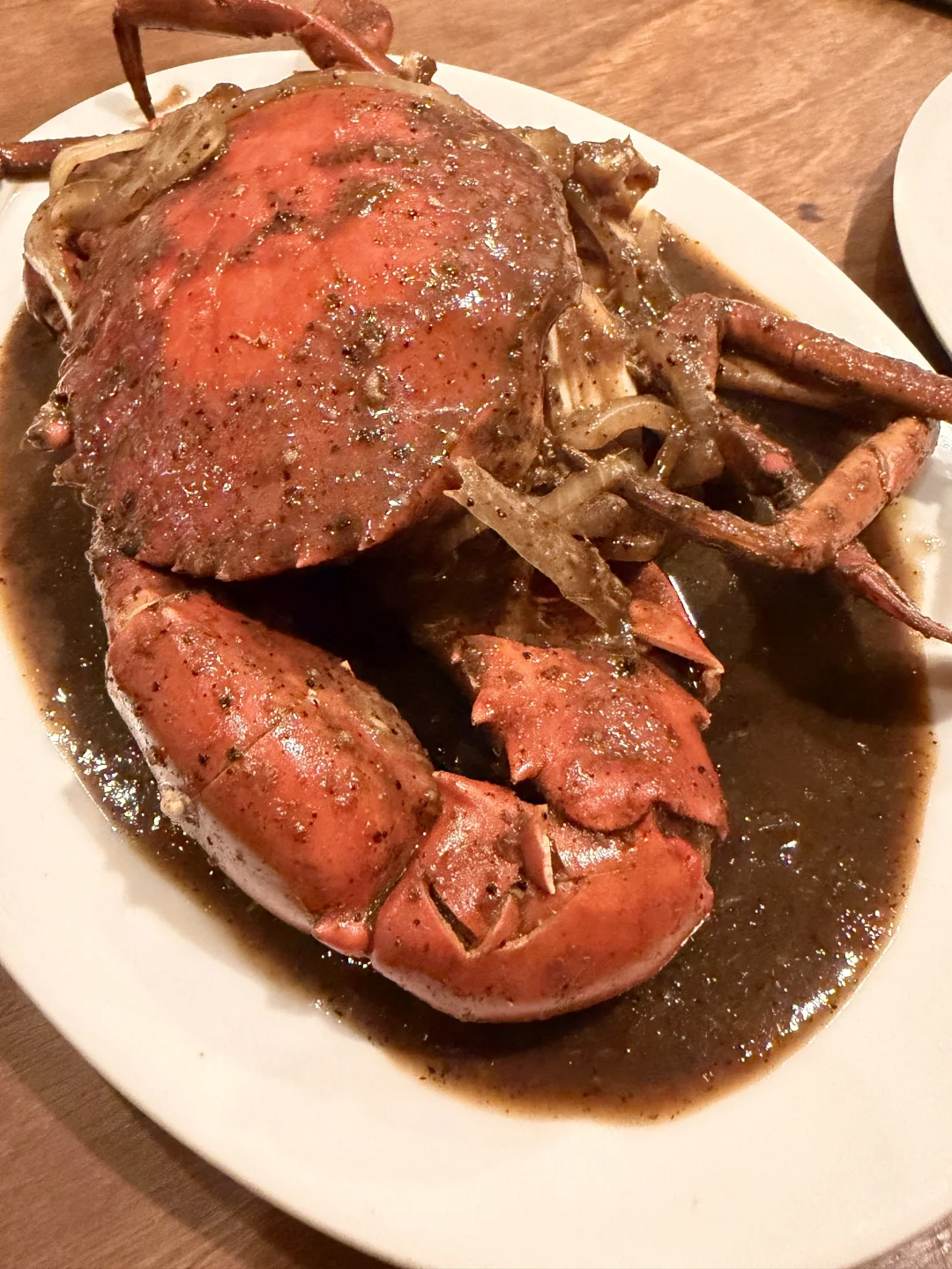 3、第二个推荐菜就是这个黑胡椒大螃蟹 虽然看着黑乎乎的有点黑暗料理,但是真的很香很好吃 吃着吃着还有点辣呢 不过对于本四川胃来说就是小case (这个是称重买卖的 现称现捞现杀)
