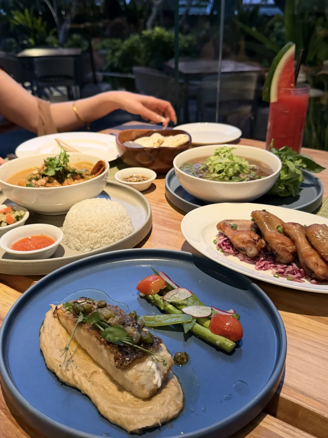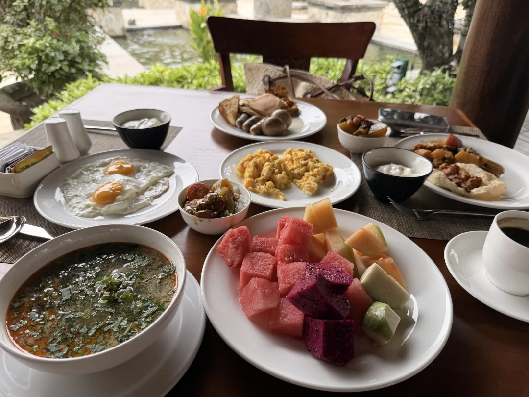 1、第一印象 大 好大!!Ayana度假村里面是有四家酒店组合在一起的 我们选择的是最便宜的Ayana林畔酒店 下车就有戴花仪式感 但是办理过程非常慢 等了好久 房间有点旧旧的 迷你吧居然没送免费饮料 欢迎水果是三个橘子 但是风景很漂亮 属于是树景房 窗外是一大片热带丛林植物环绕 房间不大 不能接受的洗澡在一个浴缸里面 感觉怪怪的 后来因为某些原因 给我们升级成了湾娜连通泳池房 这个房型房间又大又宽 洗漱间干湿分离 最妙的是联通泳池 而且这个泳池很少有游客发现 基本只有住这个房型的人才会下来玩耍 可能是因为这个原因导致我对Ayana有滤镜 太喜欢太满意了哈哈哈哈哈 下次都还想再去的程度 2、个人觉得在Ayana安排住三晚最合适 因为除住别墅外 其他酒店的客人都可以去另外三家酒店吃早餐 住三晚就可以去三家不同的酒店吃早餐 相当于住了三个酒店 我只吃了两家 我觉得最好吃的是林畔的tuge图格餐厅 早饭最好吃 水果最多最新鲜 早餐的咖喱牛肉饭好吃惨了 (p7) p6是图格的晚餐也非常好吃 p8、p9是padi帕迪餐厅 风景比图格好是海边餐厅 河粉是好吃的 其他但是没有图格的早餐好吃 p10是Rock bar 非常有名 风景很好看 吃的也还行 但是都是小吃 除此之外还有很多很多餐厅 日餐 韩餐 等等 听说都很好吃 不过感觉贵贵的就没去吃。