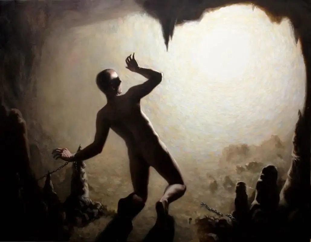 柏拉图提出了一个场景,一群人出生在一个洞穴的房间里。他们在这个地方度过一生,对外面的世界一无所知。在他们周围的某个地方,洞穴入口的光线从外部涌入。但是,当然,他们没有意识到这一点。