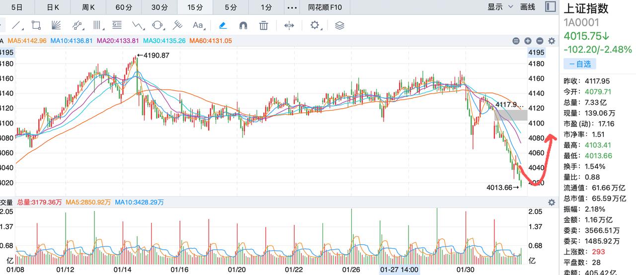 赚钱的机会往往来自多数人心惊胆寒的时候!明天大盘和个股反弹的概率很大,虽然贵金属依然会继续跌,但是其他板块将有机会反弹,甚至说明天就是节前的低点,今天能逆势建仓的都不是一般人! 明天大盘在4000点和3980点左右都有强支撑点,按照目前的交易量,大盘不会在4000点以下待太久,这是一个非常难得的坑,这个坑蹲好了,今年过年的红包大概率会不小! 明天率先反弹很可能是ai应用和商业航天,输电网仍然还会有继续走强,电网的业绩确实不错,并且多数公司的基本面都很好,这个板块作为一个避险的板块将会在2到4月继续扮演重要角色,另外农业板块也值得关注!