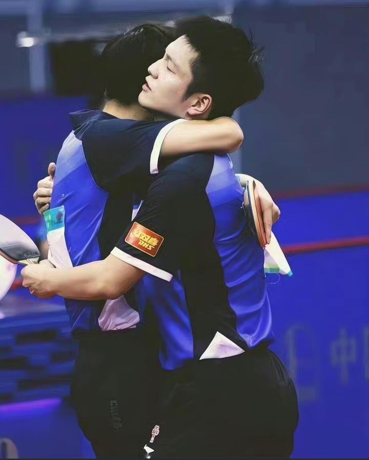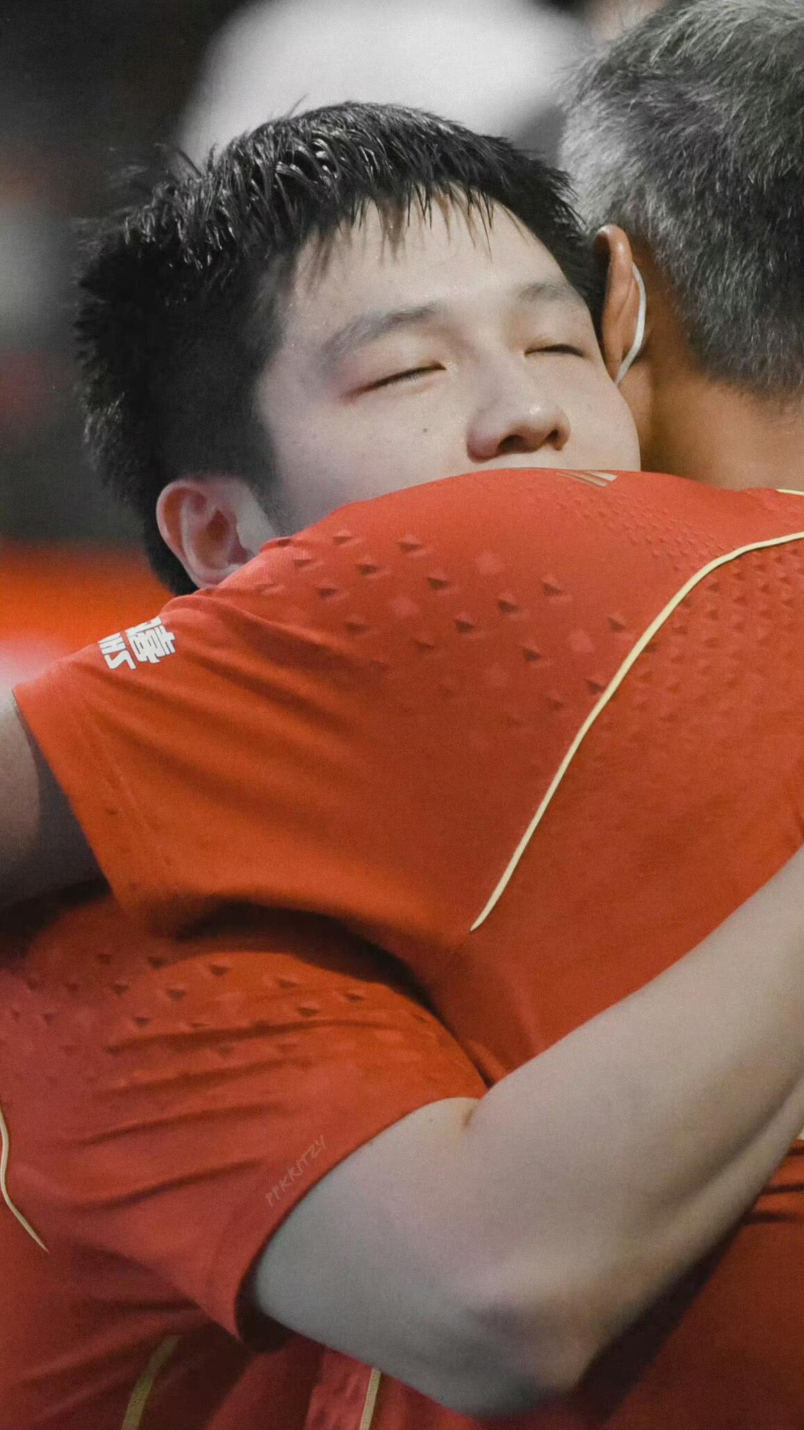 事实证明拥抱真的可以触发樊振东的闭眼技能萌化了。