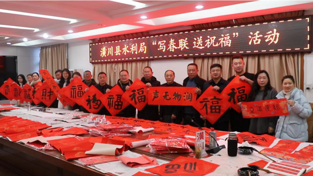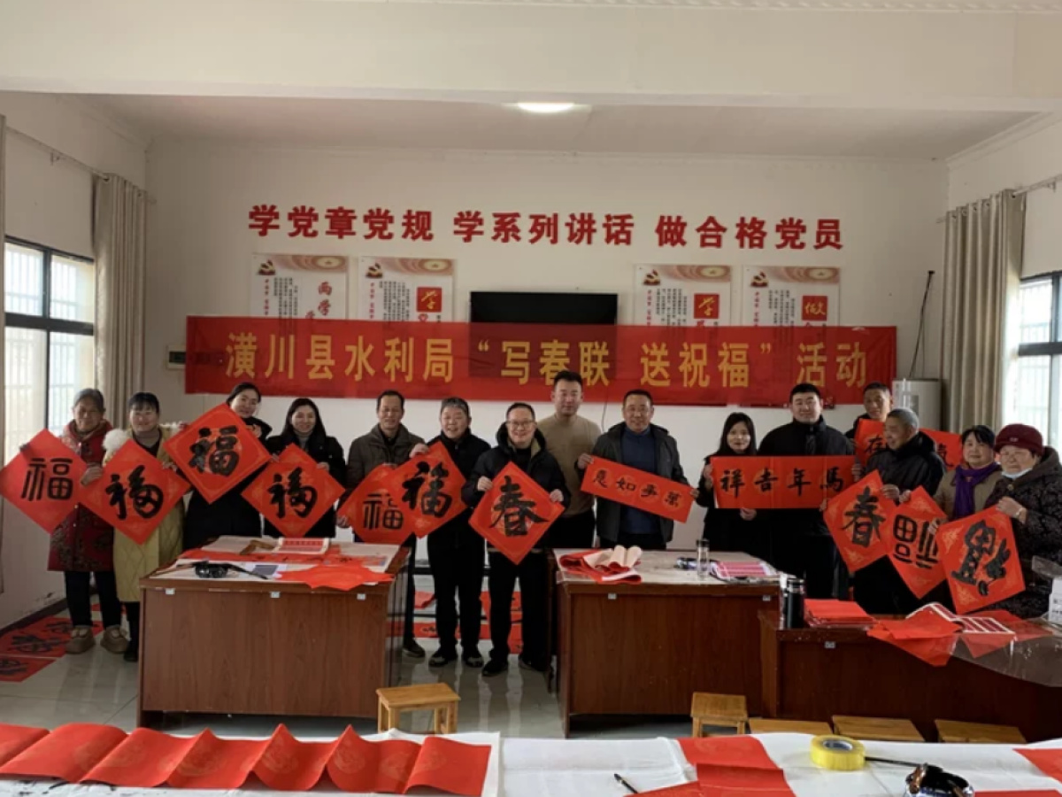 新春将至,年味渐浓。连日来,信阳市潢川县水利局组织水利系统书法爱好者例行开展持续多年的水利传统文化节目进基层“写春联送祝福”活动。水利书法爱好者们自带笔墨纸砚,走进基层单位及部分“支部联支部”包联村,为人民群众和水利系统干部职工送上新年祝福,以笔墨传温情,以雅韵贺新春。