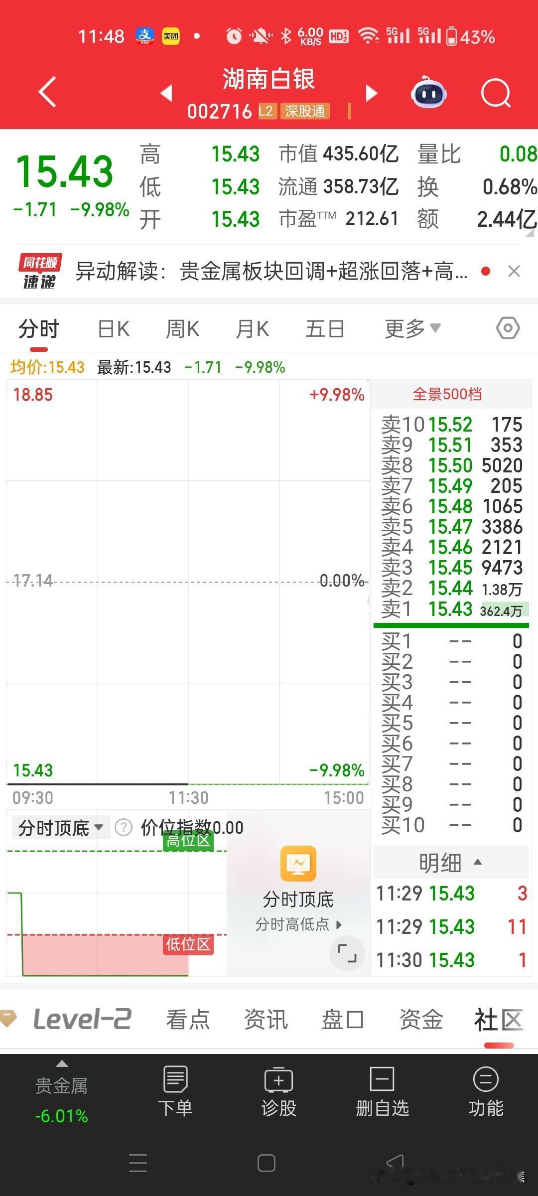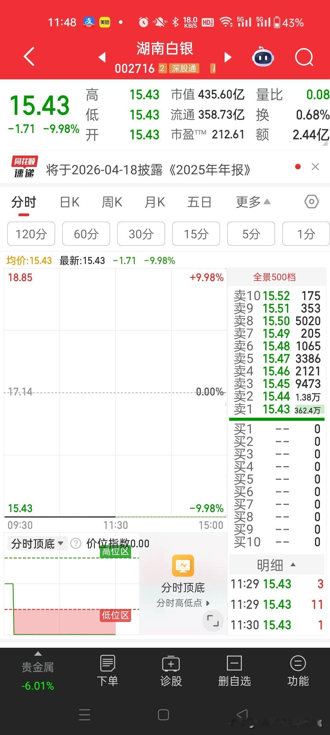 白银期货跌停,湖南白银白银有色股票继续跌停。炒银的人犯了愁,什么时候可以出来?前