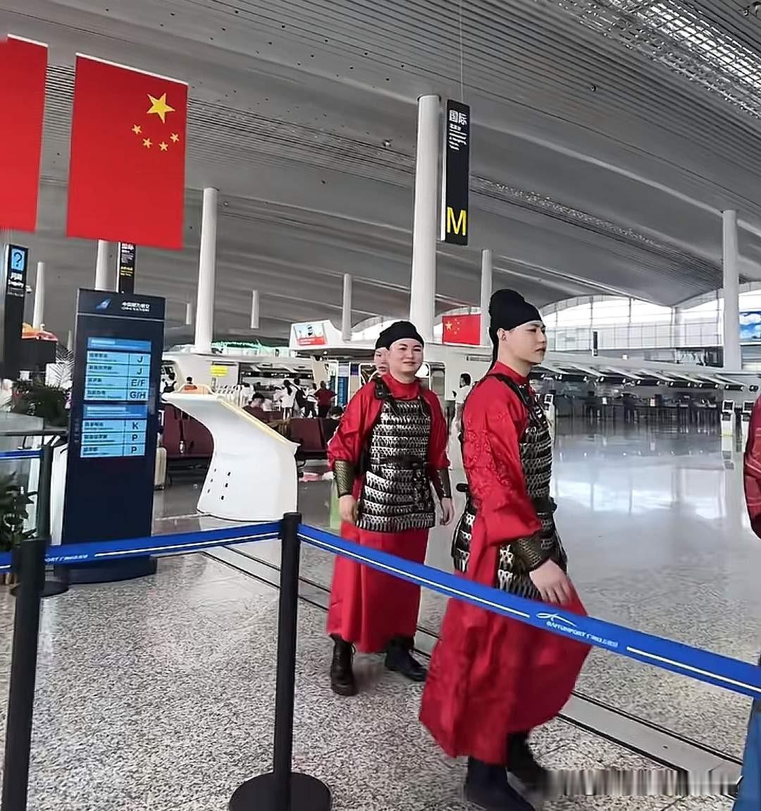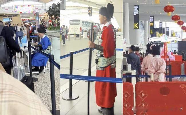 广州白云机场这波操作,真是让人眼前一亮。工作人员集体换上汉服迎新,一下子就火出了圈。 从1月31日开始,二号航站楼里热闹起来。安检、巡逻的工作人员,都穿上了精心设计的“宋服卫士”装束。保安大哥成了威风凛凛的“武士”,服务台的姑娘们化身温婉的“大家闺秀”。 这新鲜模样,引得不少旅客停下脚步,掏出手机合影,笑容里全是惊喜。这些服装可不是随便做的,全照着宋代规制来。女安保发髻上那支粉色牡丹簪花,藏着“富贵吉祥”的好意头。 连打招呼的方式都换了——工作人员学了宋代的“叉手礼”,开口就是“客官,这边请”,听着就有股穿越回古代的意思。春运的机场,本是行色匆匆的地方。 人们提着行李,归心似箭,脚步里难免带着焦虑。可这一身身宋服,像一股清泉,突然就冲淡了赶路的匆忙。有旅客说,看着“武士”保安巡逻,听着“大家闺秀”指路,连等待登机的时间都变得有意思起来。 老话说“细节见真章”,白云机场的用心,就藏在这些讲究里。宋代服饰的雅致,叉手礼的庄重,牡丹簪花的寓意,每一处都透着对传统文化的尊重。不是简单套个古装摆样子,而是把历史的韵味融进了日常服务里。 这种“活”的传承,比博物馆里的文物更能让人感受到文化的温度。外国旅客更是觉得新奇,有金发碧眼的游客举着手机拍个不停,拉着“宋服卫士”问这问那。他们或许不懂宋代的规制,却能从服饰的纹样、行礼的姿态里,读出中国文化的讲究。 这不经意间,就成了一场生动的文化交流。春运的机场,本是国际往来的窗口,这下倒成了展示中华传统的舞台。其实,传统文化的传承,未必非要端着架子。 像白云机场这样,把古人的智慧、审美的意趣,悄悄融进现代生活的场景里,反而更容易让人接受。旅客赶春运,图的是平安回家,这份穿越感带来的惊喜,就像冬日里的暖阳,让归途多了份温暖。 有人说,这是“新瓶装旧酒”,可这“新瓶”装得巧,“旧酒”才更有滋味。机场是最讲效率的地方,却能用最诗意的方式,让人们慢下来感受文化。这种反差,本身就是一种巧思。它告诉我们,传统不是老古董,只要用对了方式,就能在当下焕发生机。 春运还在继续,白云机场的“宋服卫士”们还在岗位上忙碌。他们的微笑里,既有现代服务的专业,又有传统文化的温婉。这份独特的风景,或许会成为很多旅客归途里,最难忘的一段记忆。 说到底,文化的魅力,从来不在于有多高深,而在于能否走进生活,触动人心。白云机场这波操作,没喊什么口号,却用一身衣裳、一个礼仪,让更多人体会到了传统之美。这或许就是最好的文化传播——自然、温暖,还带着点让人会心一笑的巧思。