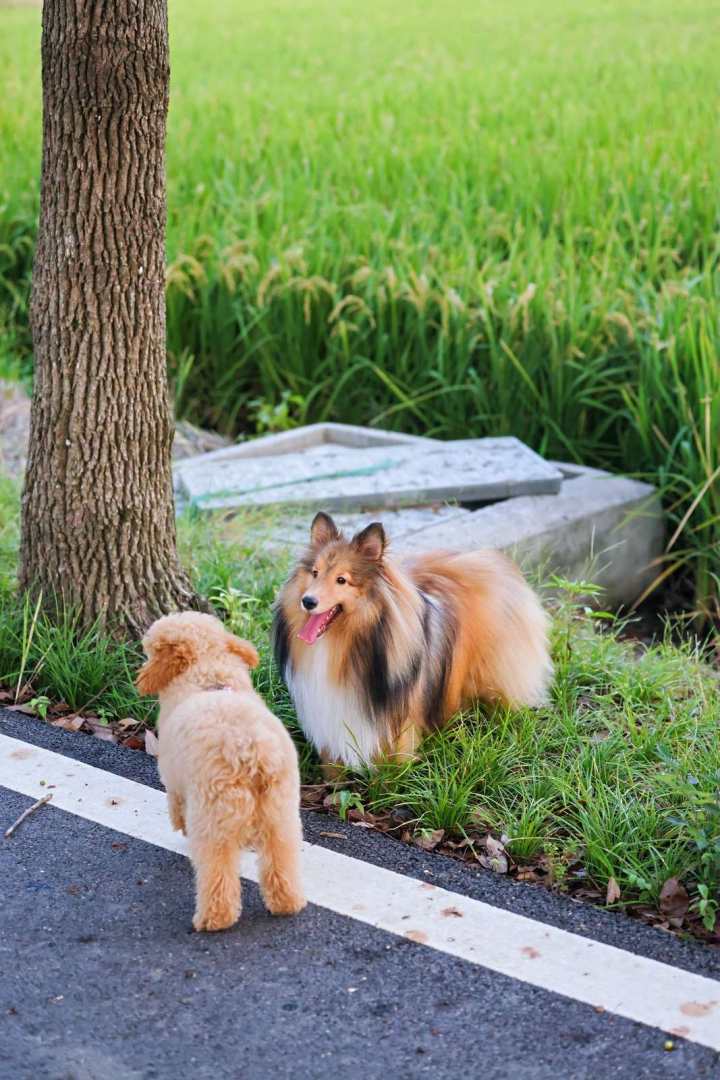 后来我们就猜想,那只边牧在家里应该是听粑粑的话,所以麻麻一个人带出来就无法无天了,哈哈哈。
