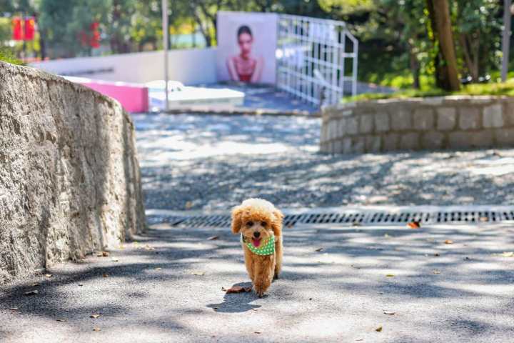 上图的的确确有照骗的感觉,毛孩子家长发出去以后,别人还以为是在哪里的森林公园里拍的,其实就是马路边一小块绿化带。