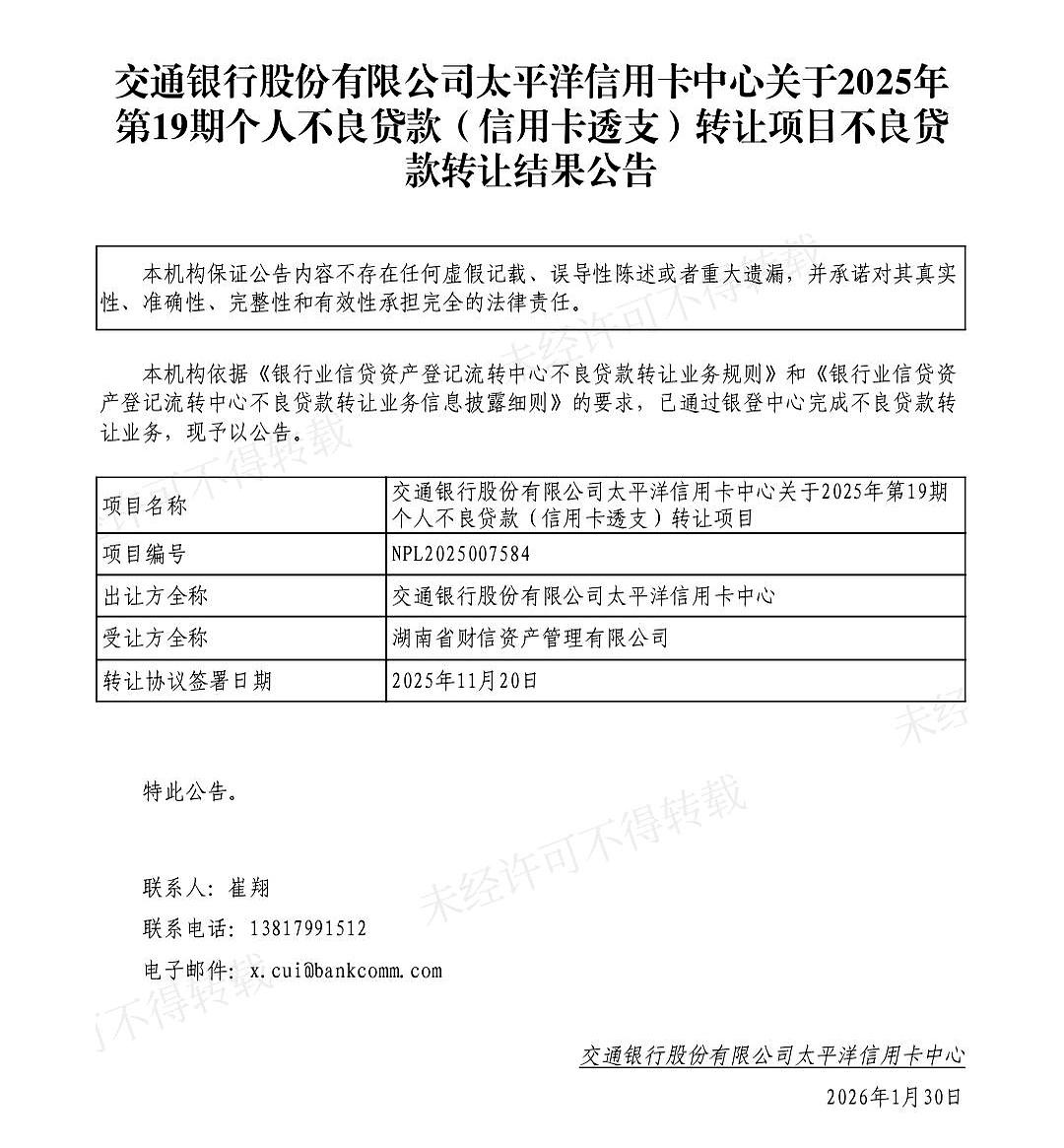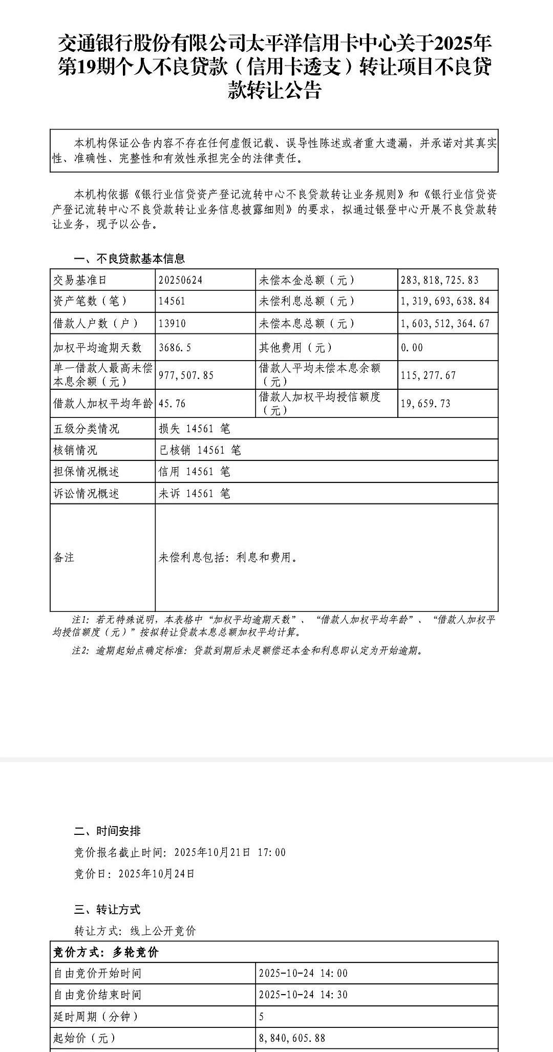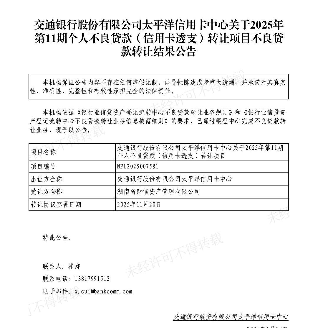 36亿的烂账,在银行眼里就是一堆废纸,这次交行算是彻底“断舍离”了。 直接把5.2万个逾期六到十年的“死账”打包,像卖白菜一样甩给了湖南财信。 起拍价低到0.055折,这是什么概念? 相当于一百块钱的债,几分钱就转手了。 我那个做不良资产处置的朋友冷笑了一声,道:“别以为银行核销了,这事儿就翻篇了。” 接盘的是地方国企,人家既然敢接这烫手山芋,手里没把金刚钻敢揽瓷器活? 对于那5万多名债务人来说,噩梦恐怕才刚开始。 征信上的“损失类”评级和D/G标记,跟那古代的“刺配金印”没两样,严重不良记录还得跟五年。 以前是银行斯斯文文打电话,以后是专业机构进场,手段只会更“专业”、更直接。 这年头,欠钱的自以为是大爷,却忘了收拾大爷的人,正在路上赶着呢。