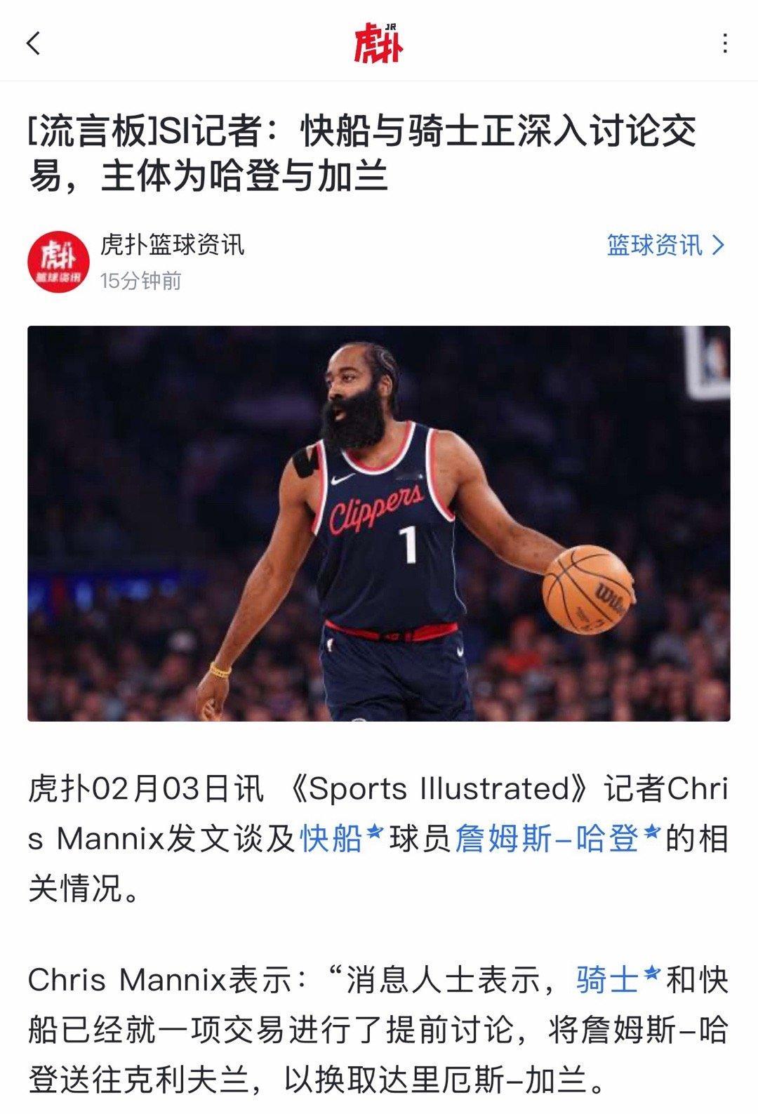 Shams Charania的最新报道,快船与哈登均正在积极努力,在交易截止日前完成哈登的换队交易。