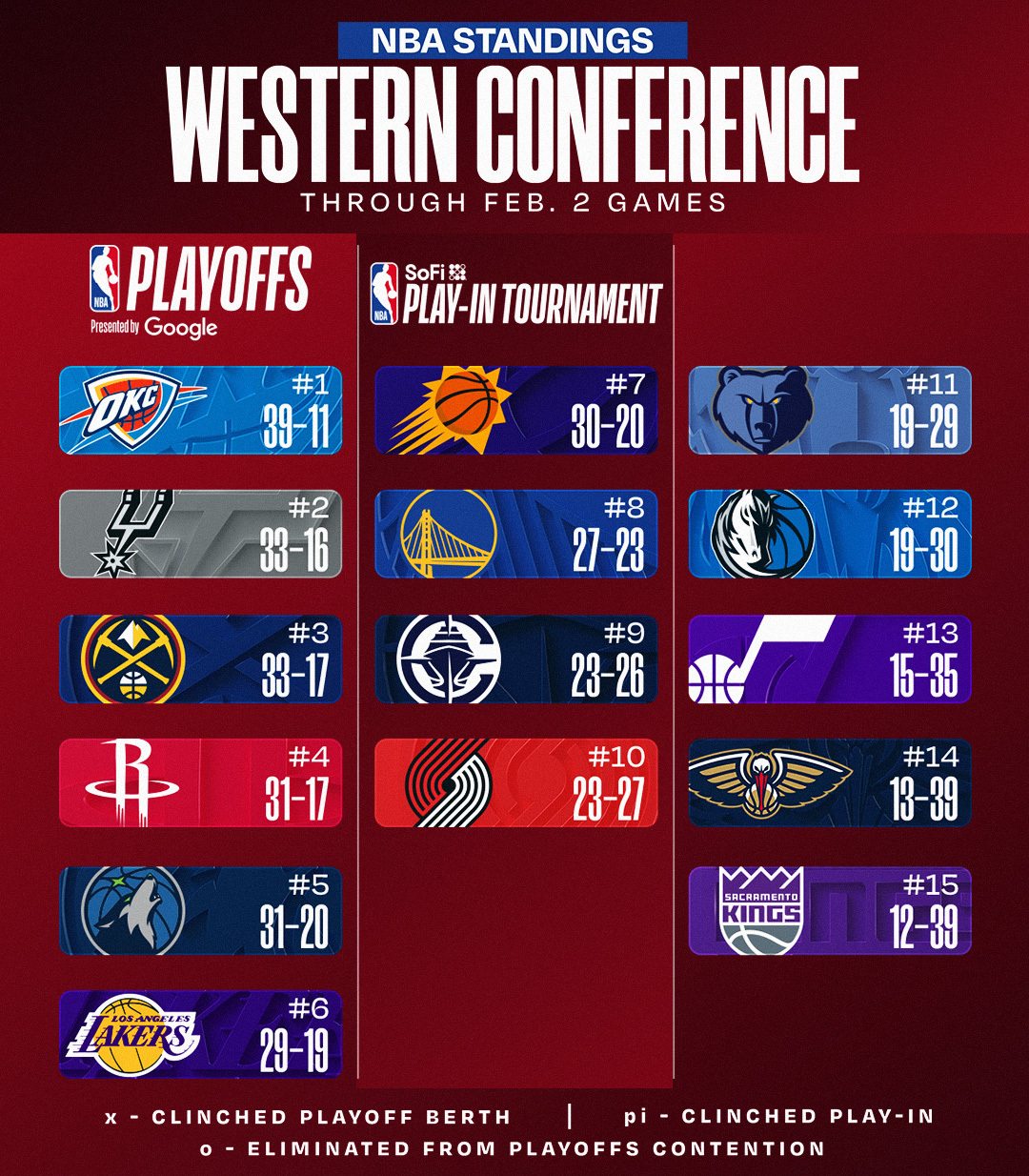 更新,今日赛后排名。NBA