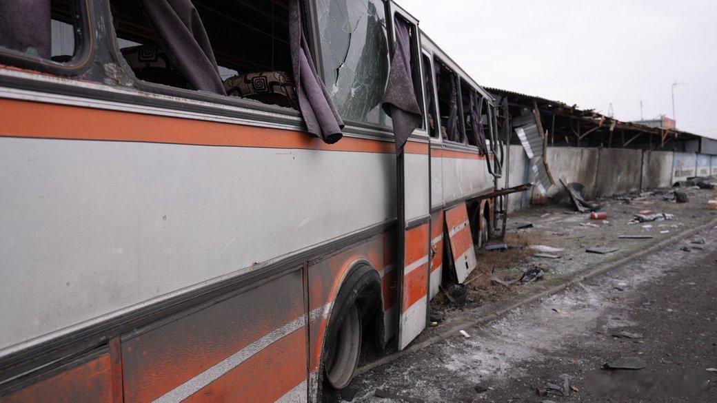 据州军事行政局局长甘扎通报,无人机在巴士附近命中目标。
