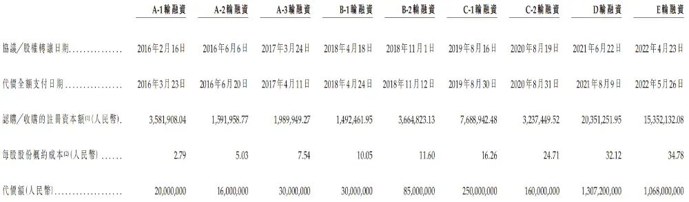 公司上市前经历了多轮融资,累计融资约29.7亿元人民币。在2022年4月的E轮最新融资中,公司的投后估值约为57.0亿人民币。