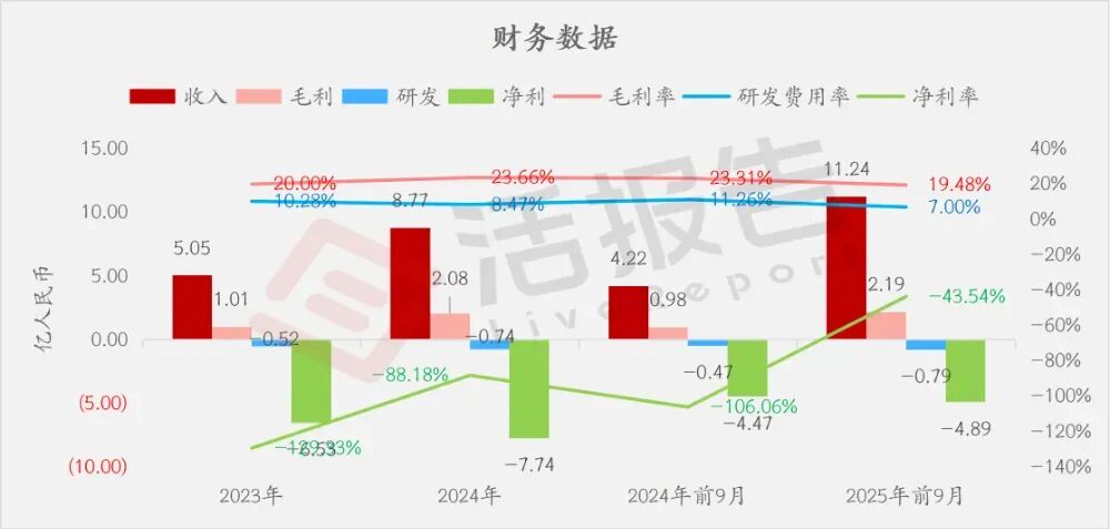 公司是中国一家结合数字交易平台与MRO产品自主制造能力的综合工业集团,2024年收入8.77亿元,净亏损7.74亿元,毛利率23.66%。2025年前9月收入11.24亿元,净亏损4.89亿元,毛利率19.48%。