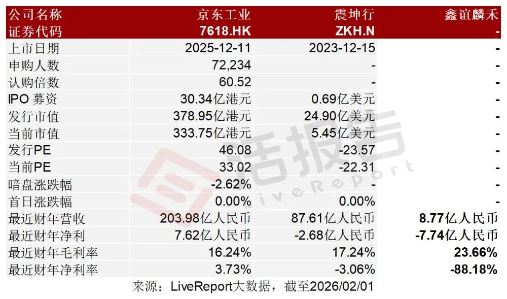 同行业IPO可比公司:京东工业(7618.HK)、震坤行(ZKH.N)
